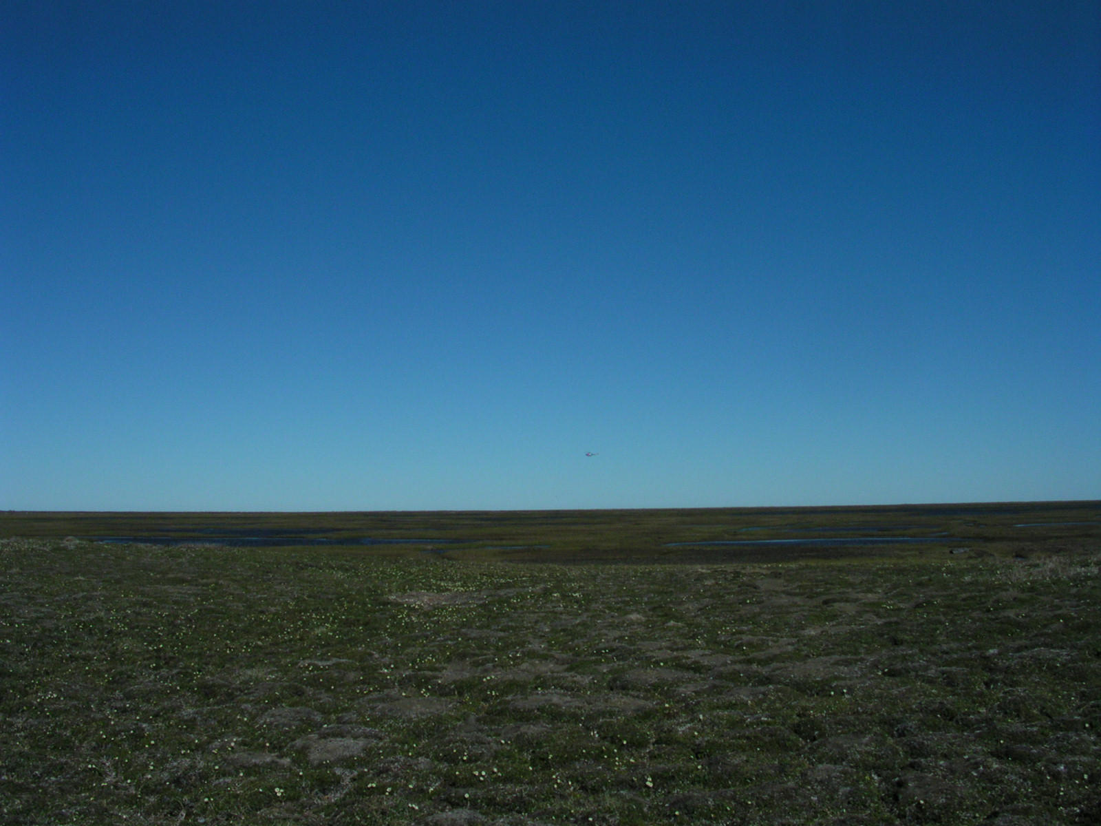 A view of some of the tundra of the Ikpikpuk Delta. You can see some grubbing, or de-vegetation caused by the grazing of snow geese (*Chen caerulescens*)/