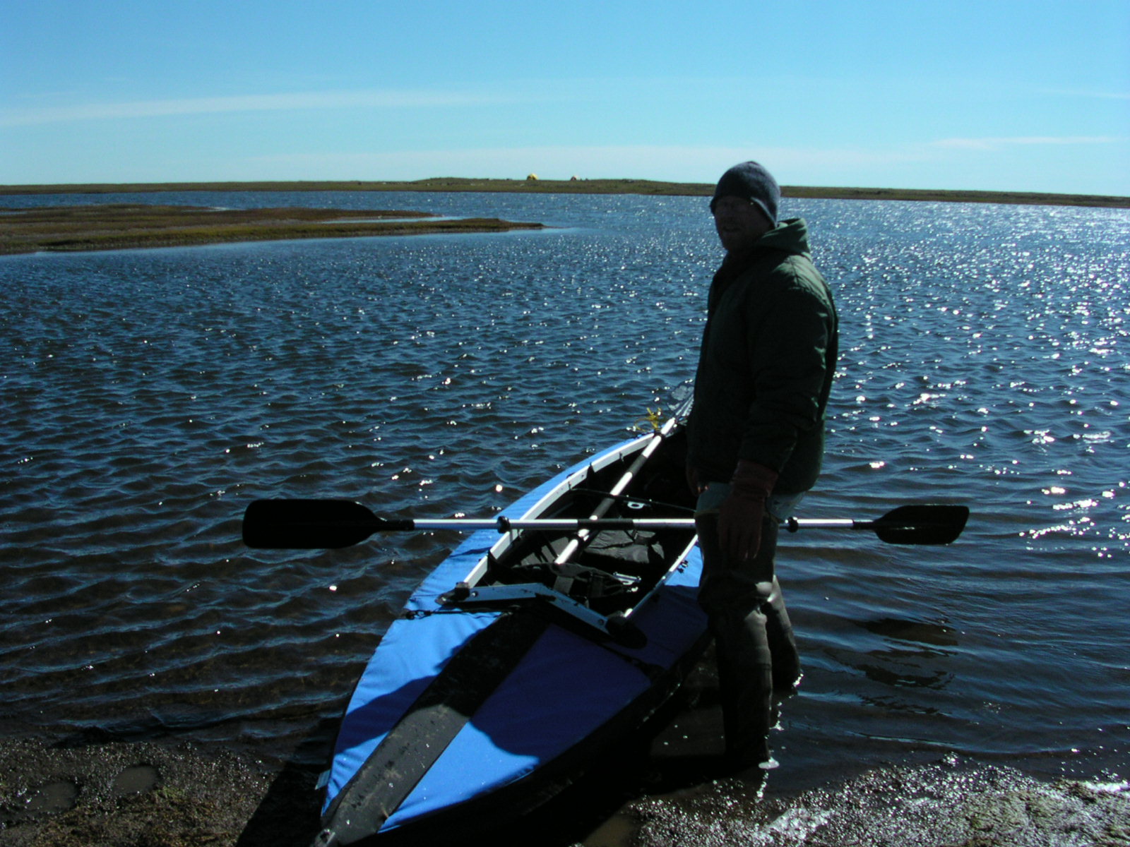 Biologist Brian Person stands by a collapsible kayak on the Ikpikpuk Delta.