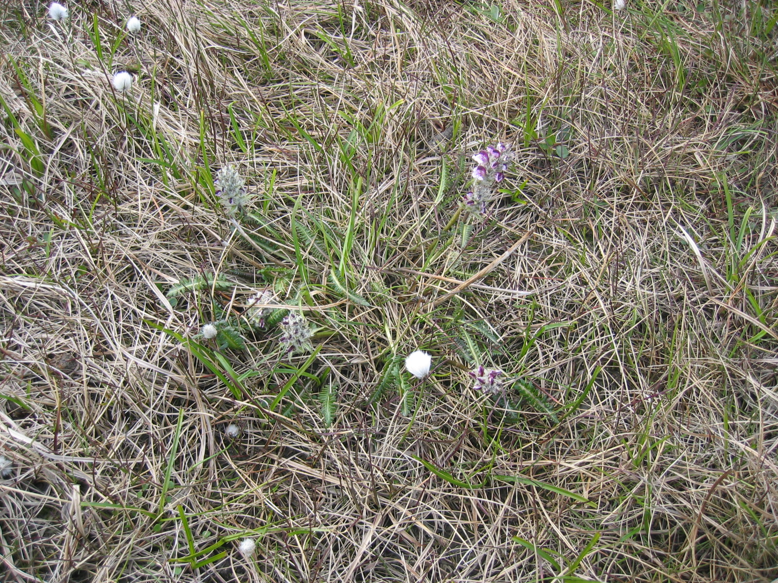Cottongrass (*Eriophorum vaginatum*) and wooly lousewort seen on the tundra, near Barrow, Alaska.