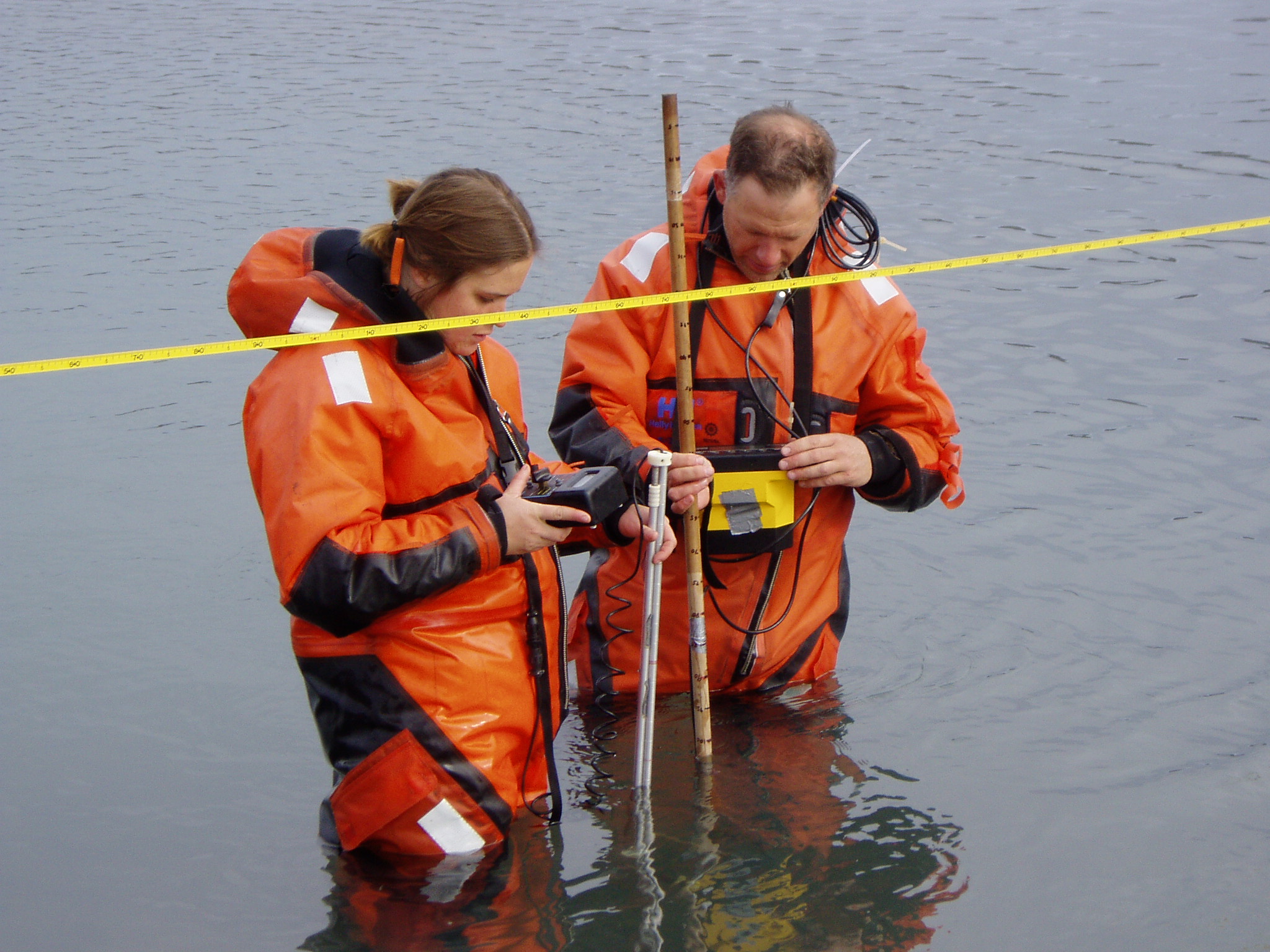 TREC teacher Robert Oddo and student Fran Moore take flow rate measurements.