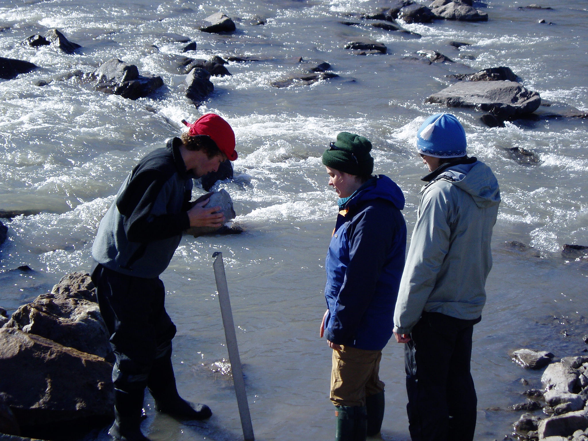 Installing level logger on Linne Elva(River), Svalbard, Norway.