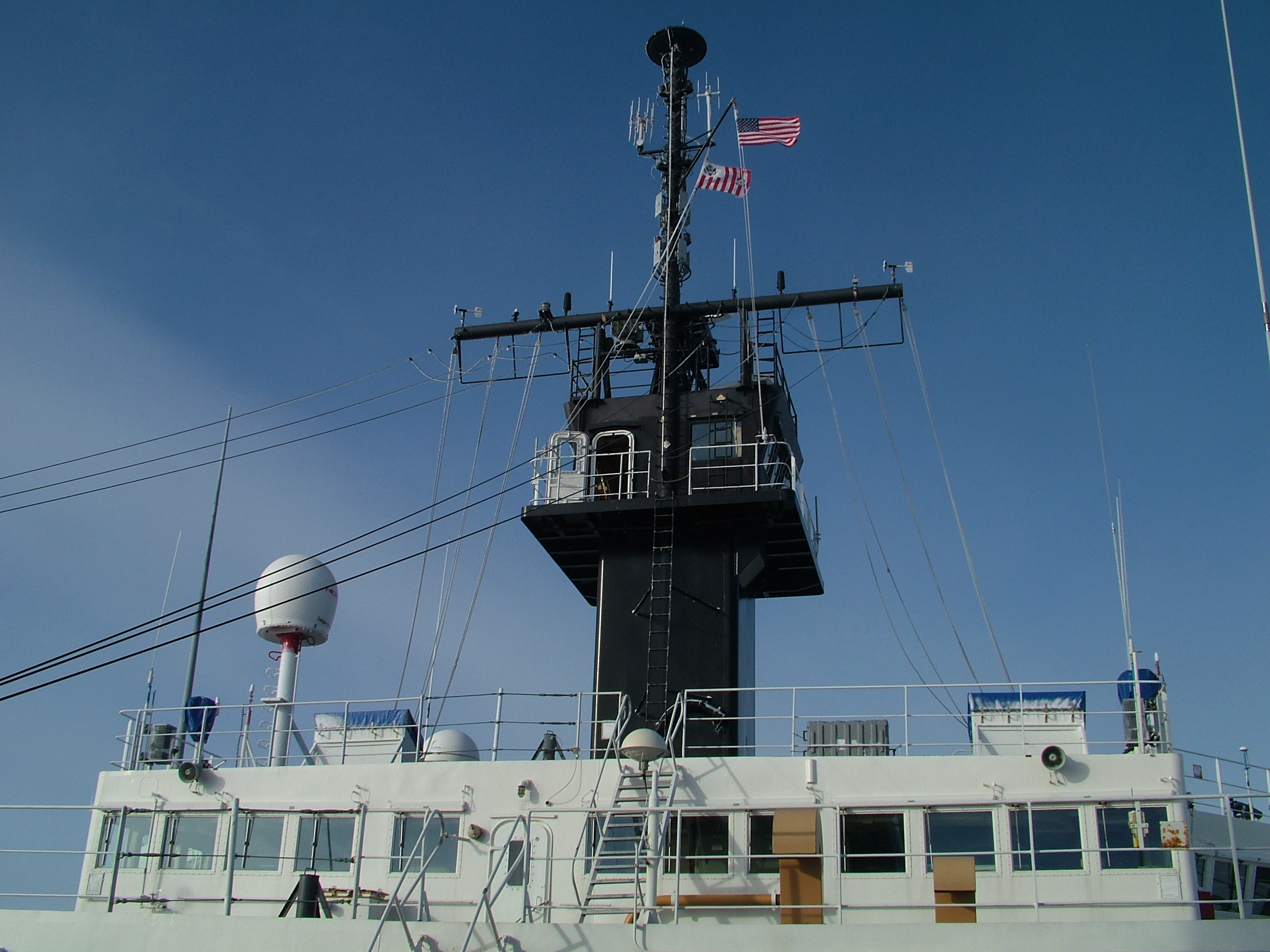 A view of the super structure of the USCG icebreaker Healy.