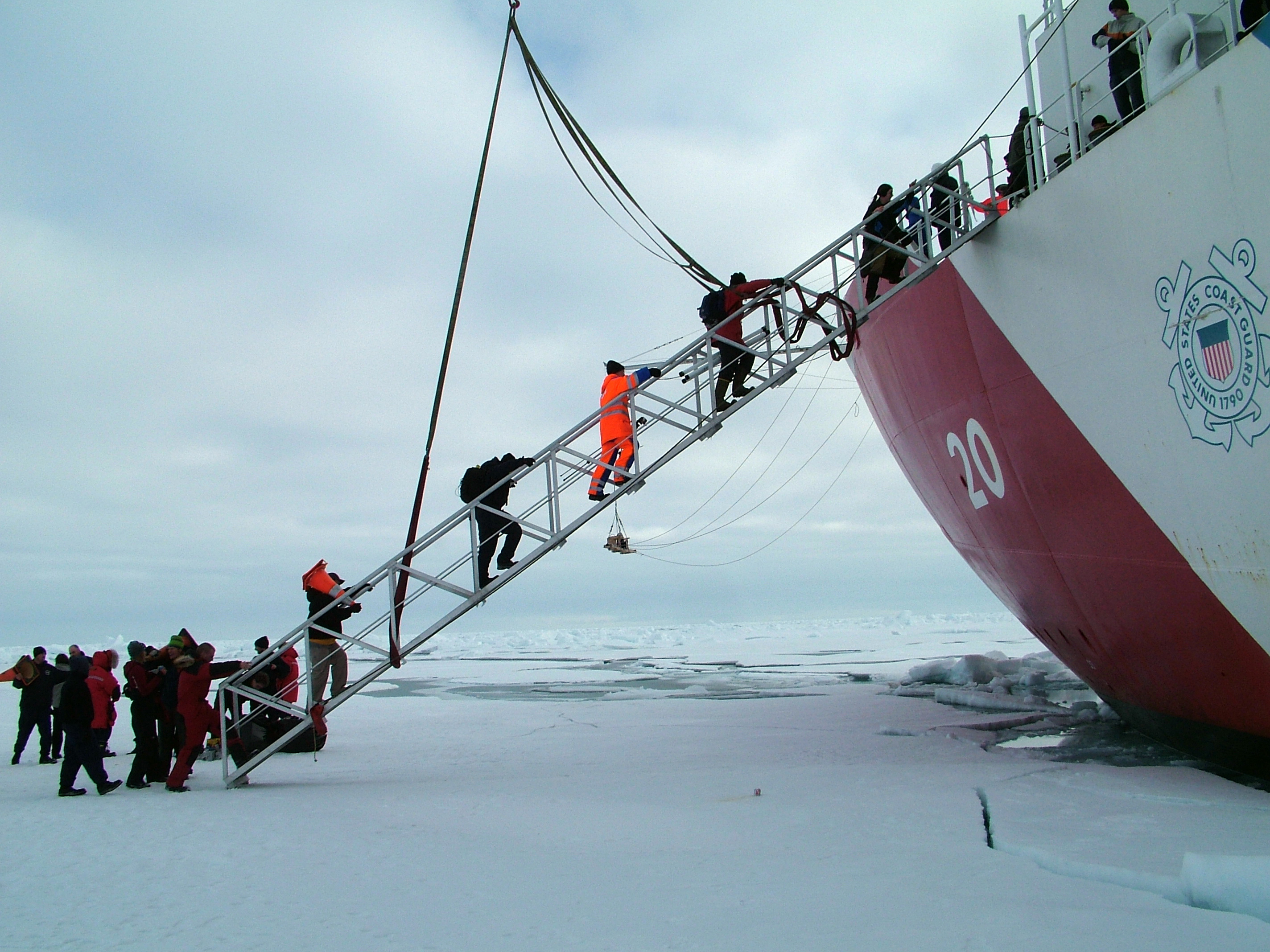 The crew of the USCGC Healy enjoy an ice liberty somewhere on the Arctic Ocean.