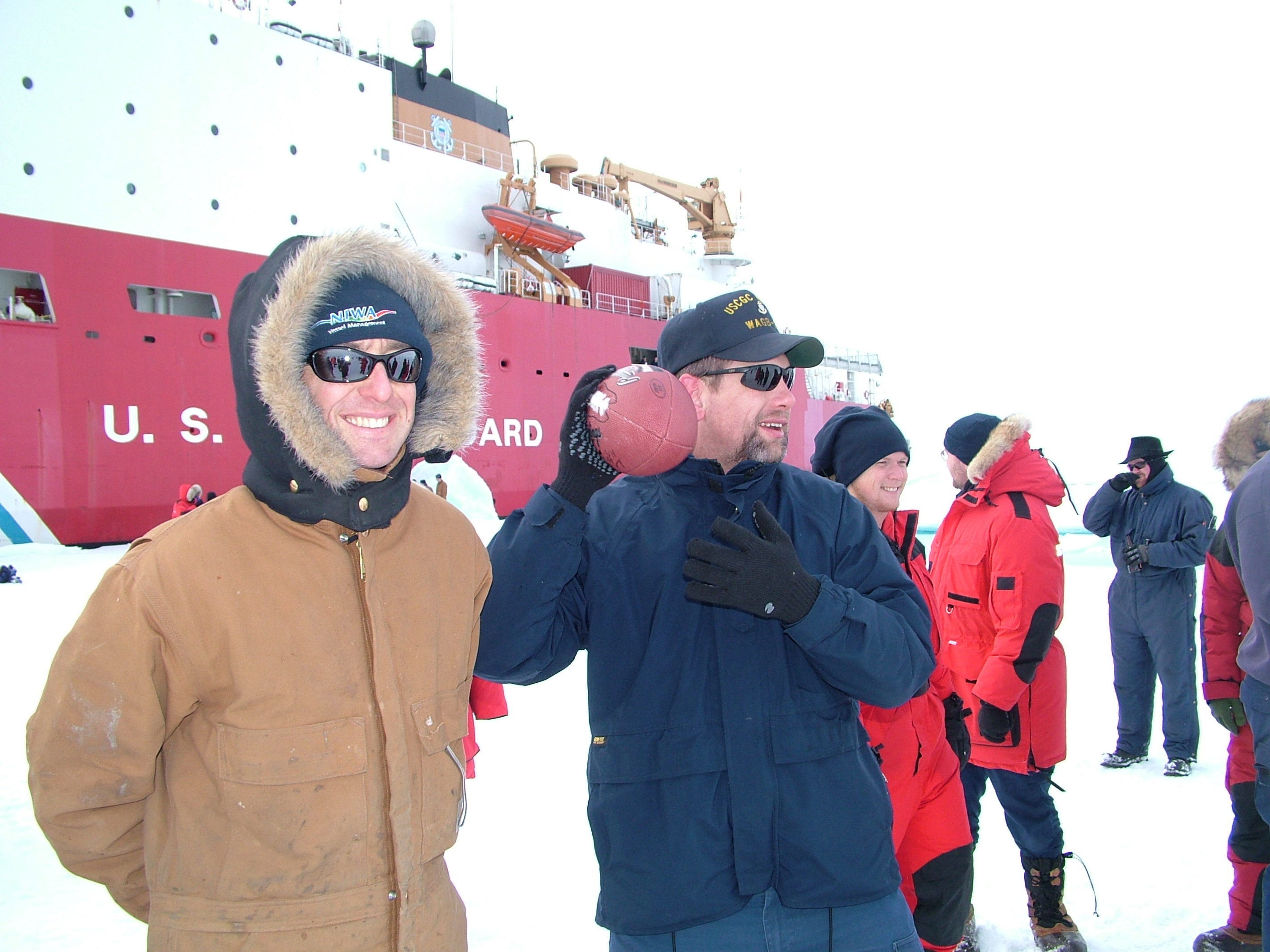 The crew of the USCGC Healy enjoy an ice liberty somewhere on the Arctic Ocean.