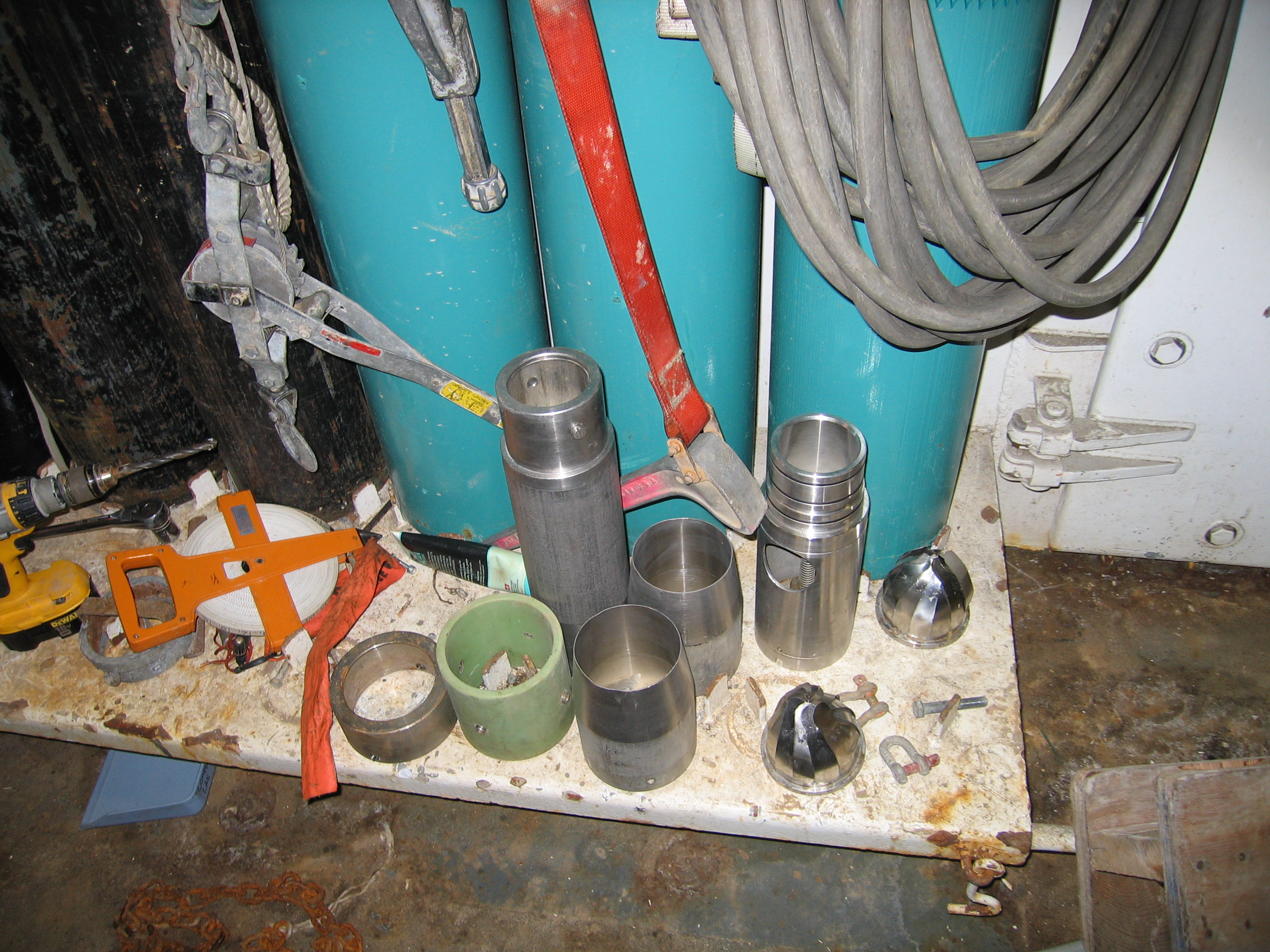 Some of the equipment used to take a Jumbo Piston Core (JPC) of the ocean floor.
