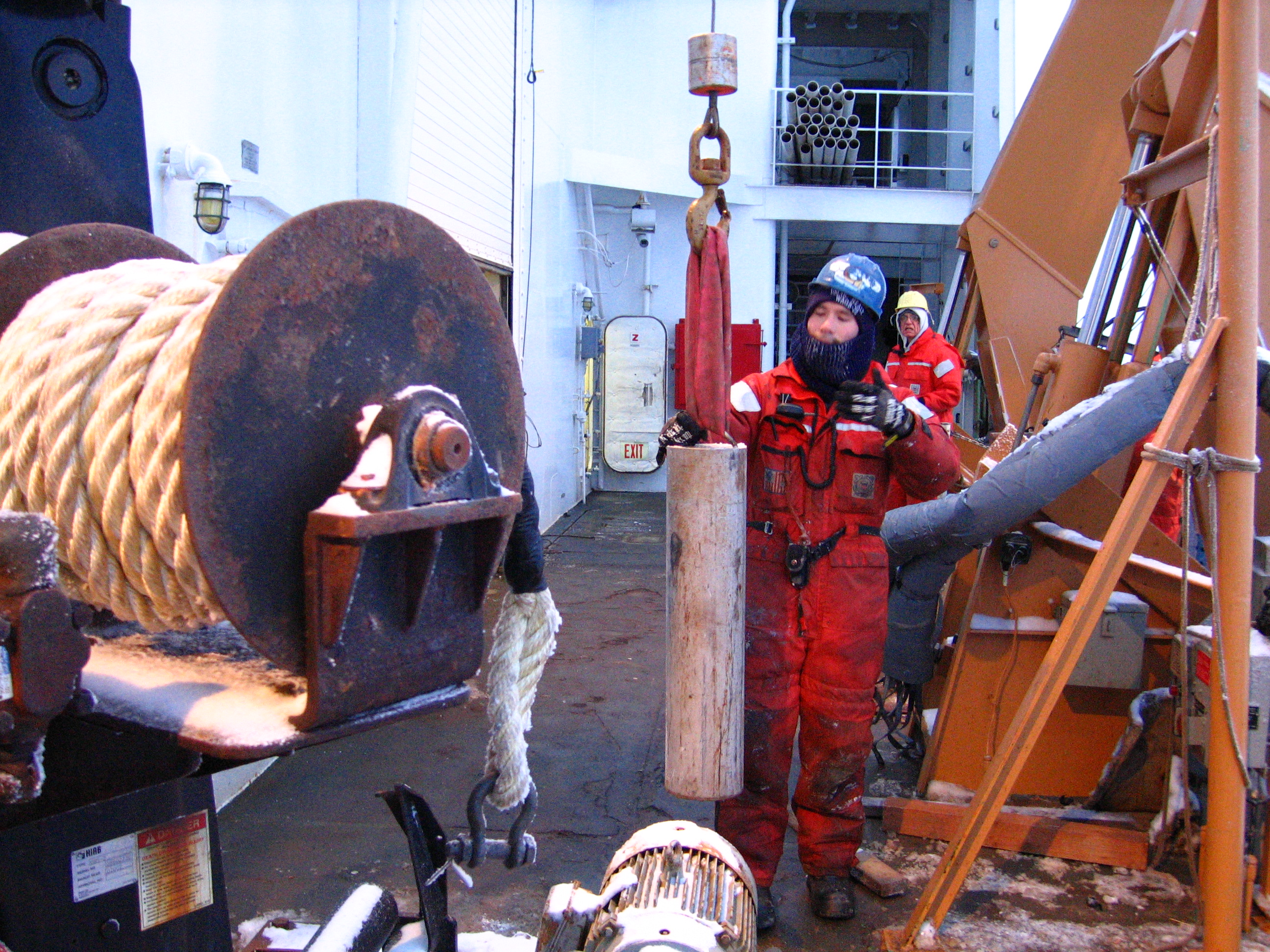 Preparing to take a sea floor core with the Jumbo Piston Core (JPC) on board the USCGC Healy.