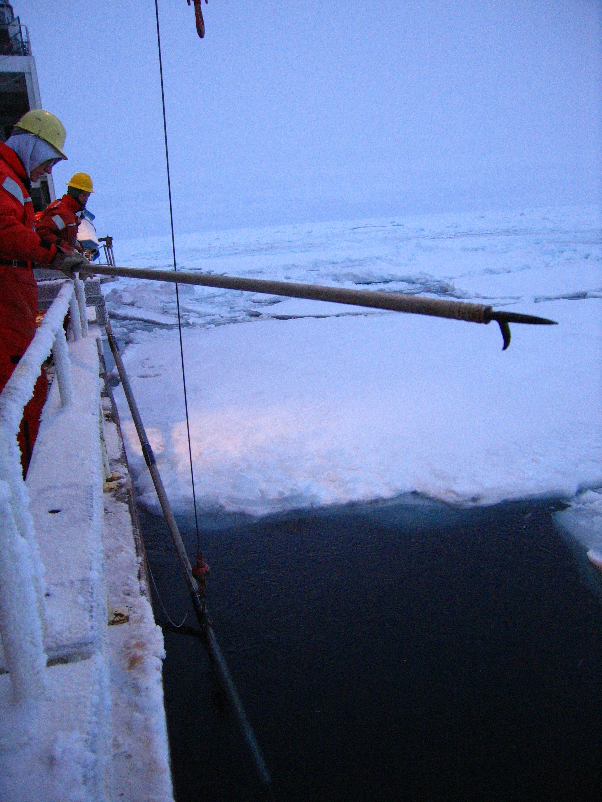 Taking a sea floor core with the Jumbo Piston Core (JPC) on board the USCGC Healy.