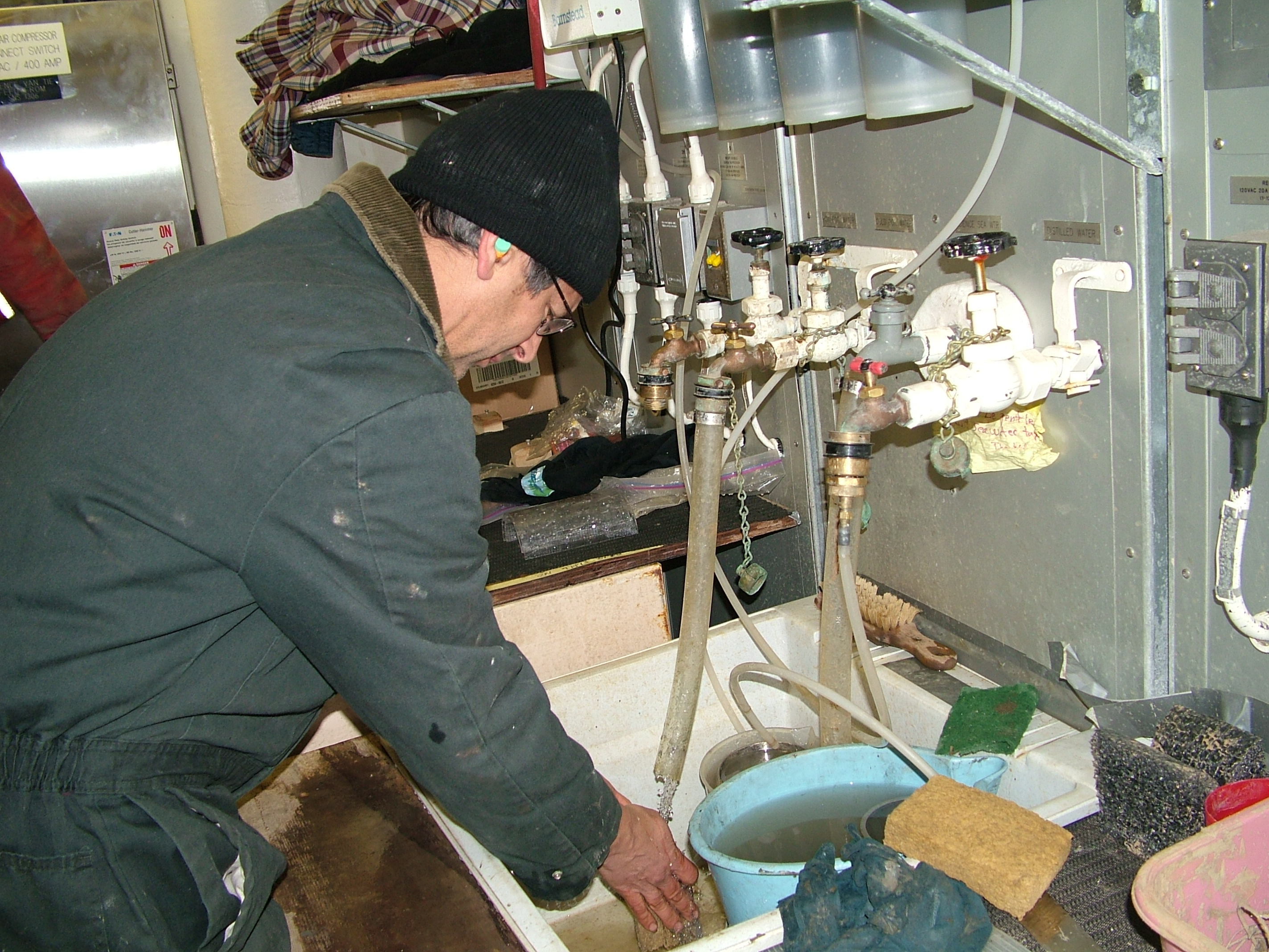 Washing hands on board the USCGC Healy.