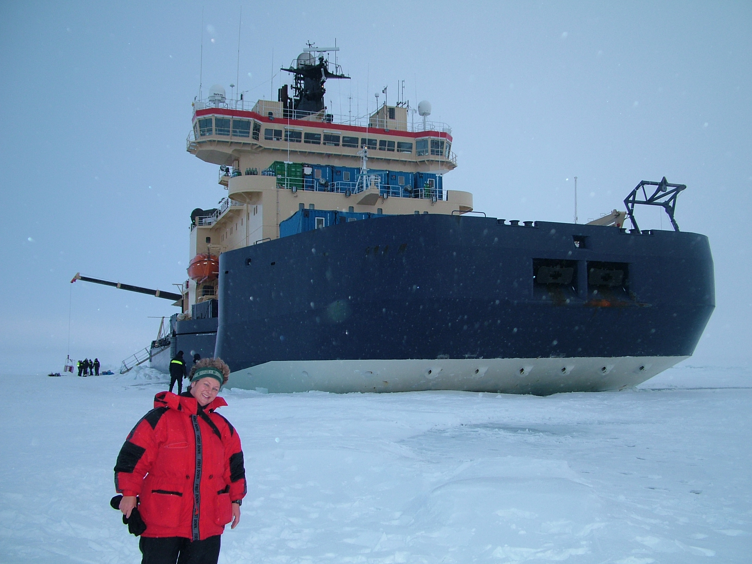 The Swedish icebreaker Oden with TREC teacher Ute Kaden in the foreground.