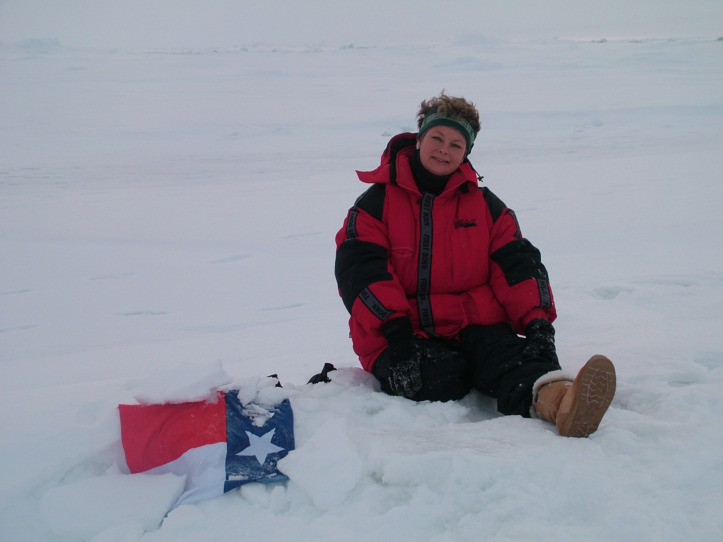 The Texas state flag rests on the ice of the Arctic Ocean, put there by TREC teacher Ute Kaden.
