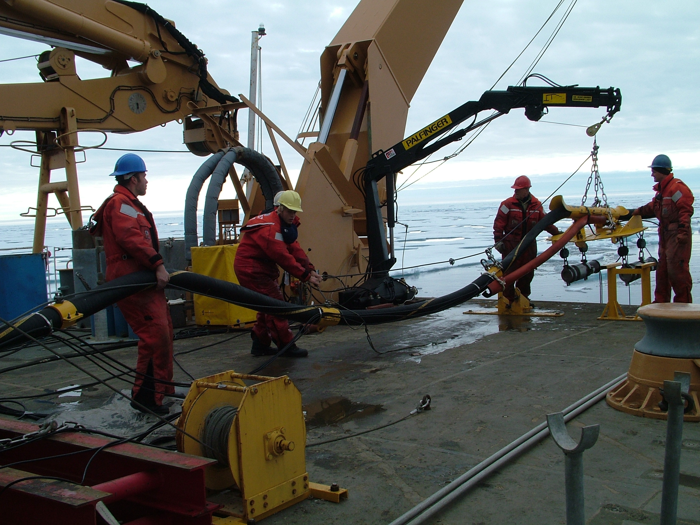 Seismic air gun equipment which makes seismic data collection about the ocean floor possible as seen from the deck of the USCGC Healy.