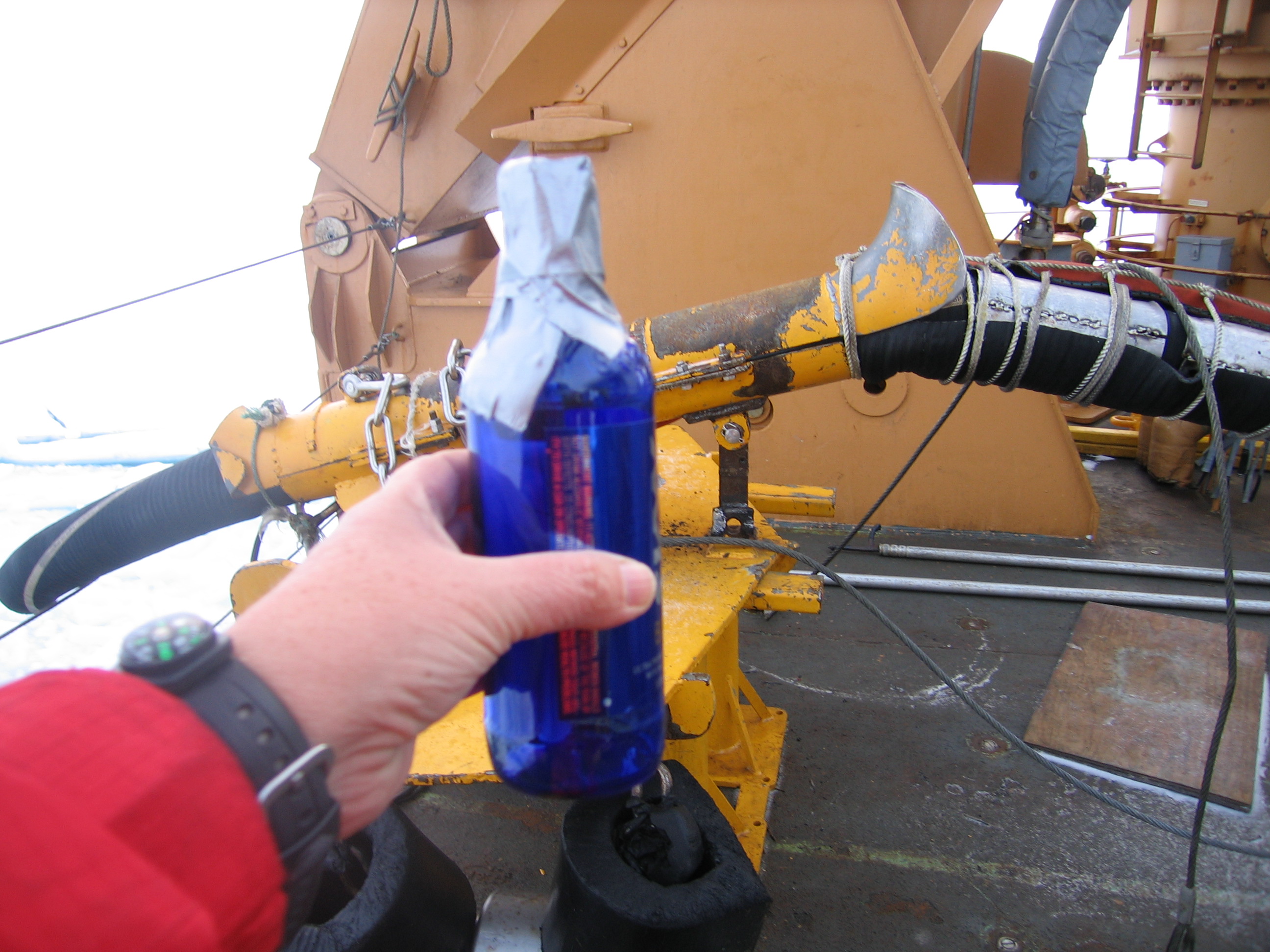 A message in a bottle ready to go into the Arctic Ocean from on board the USCGC Healy.