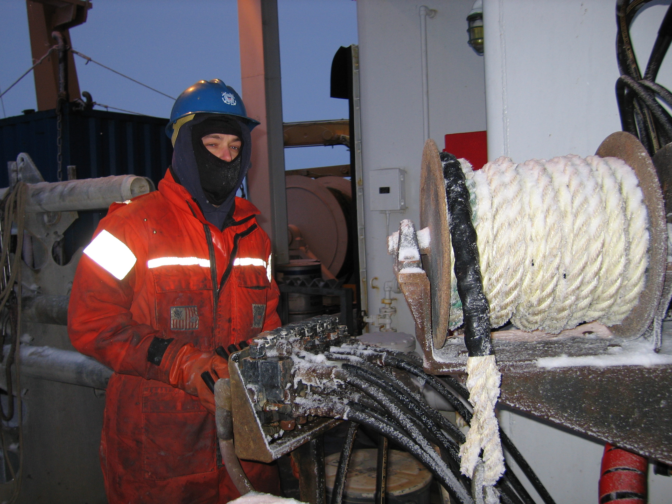 Preparing to take a sea floor core with the Jumbo Piston Core (JPC) on board the USCGC Healy.