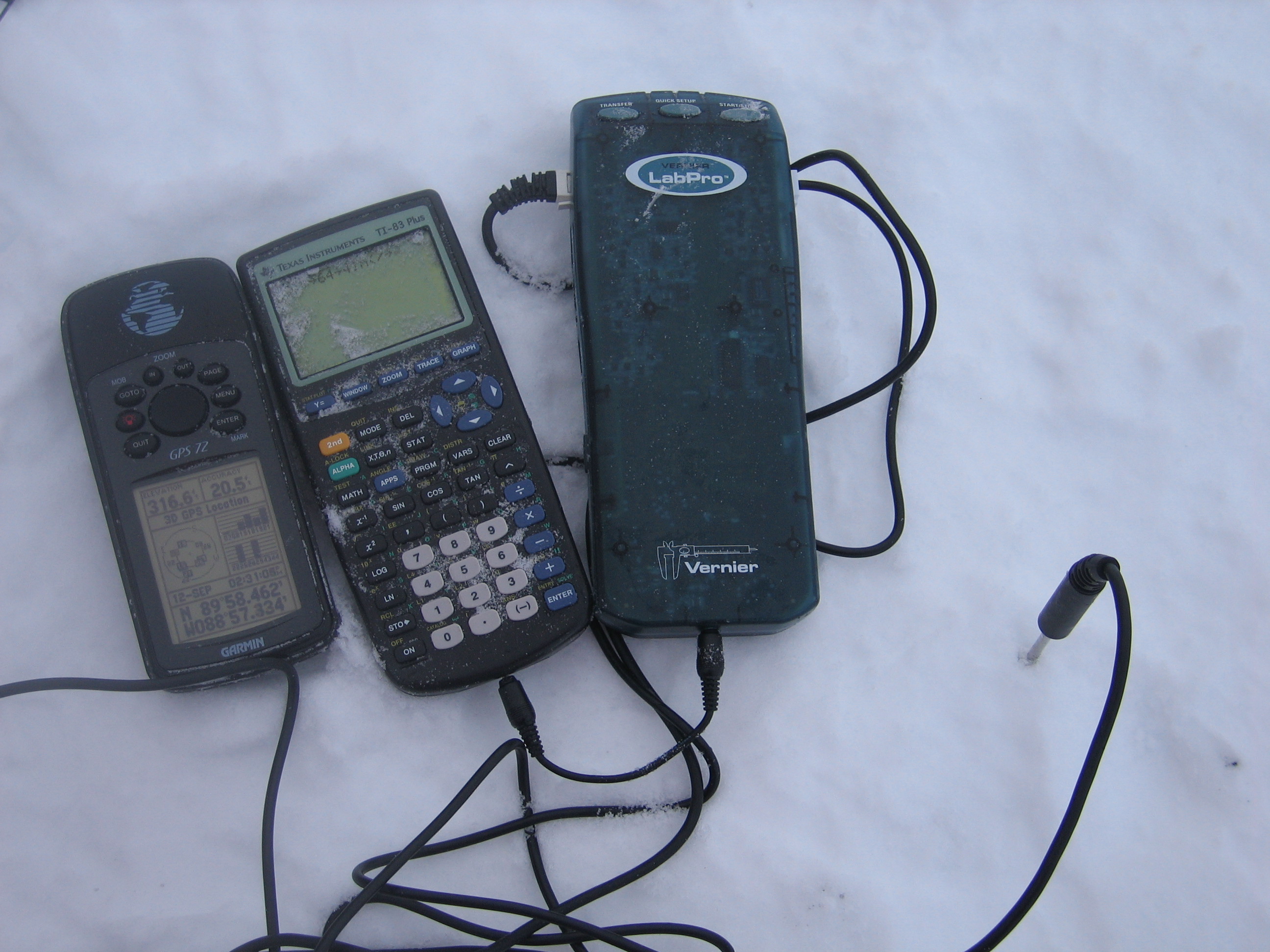A Vernier Lab Pro and a photo gate that TREC teacher Ute Kaden used to measure acceleration due to gravity at the North Pole during the USCGC Healy's ice liberty.