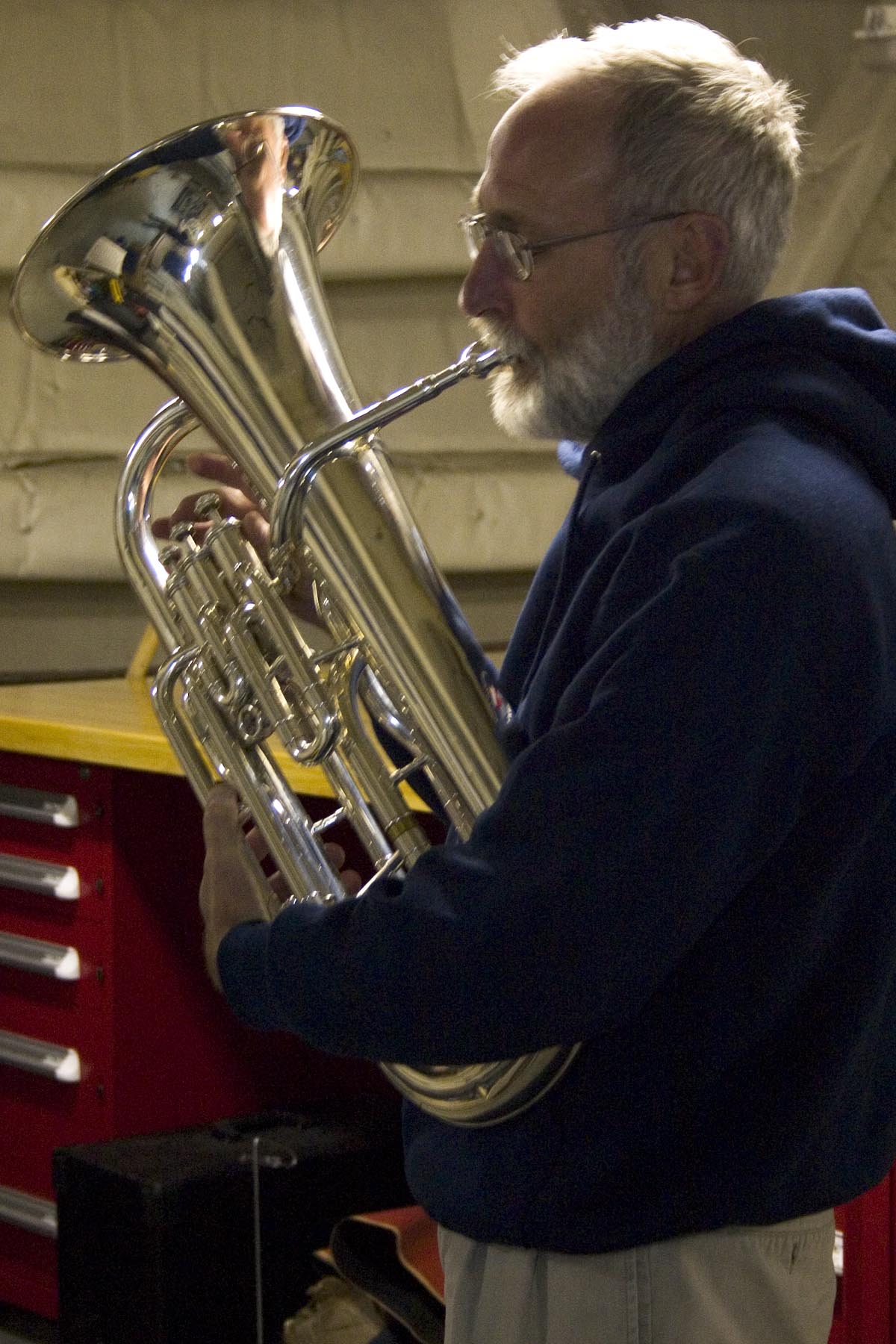 Researcher Paul Henkart plays an instrument.