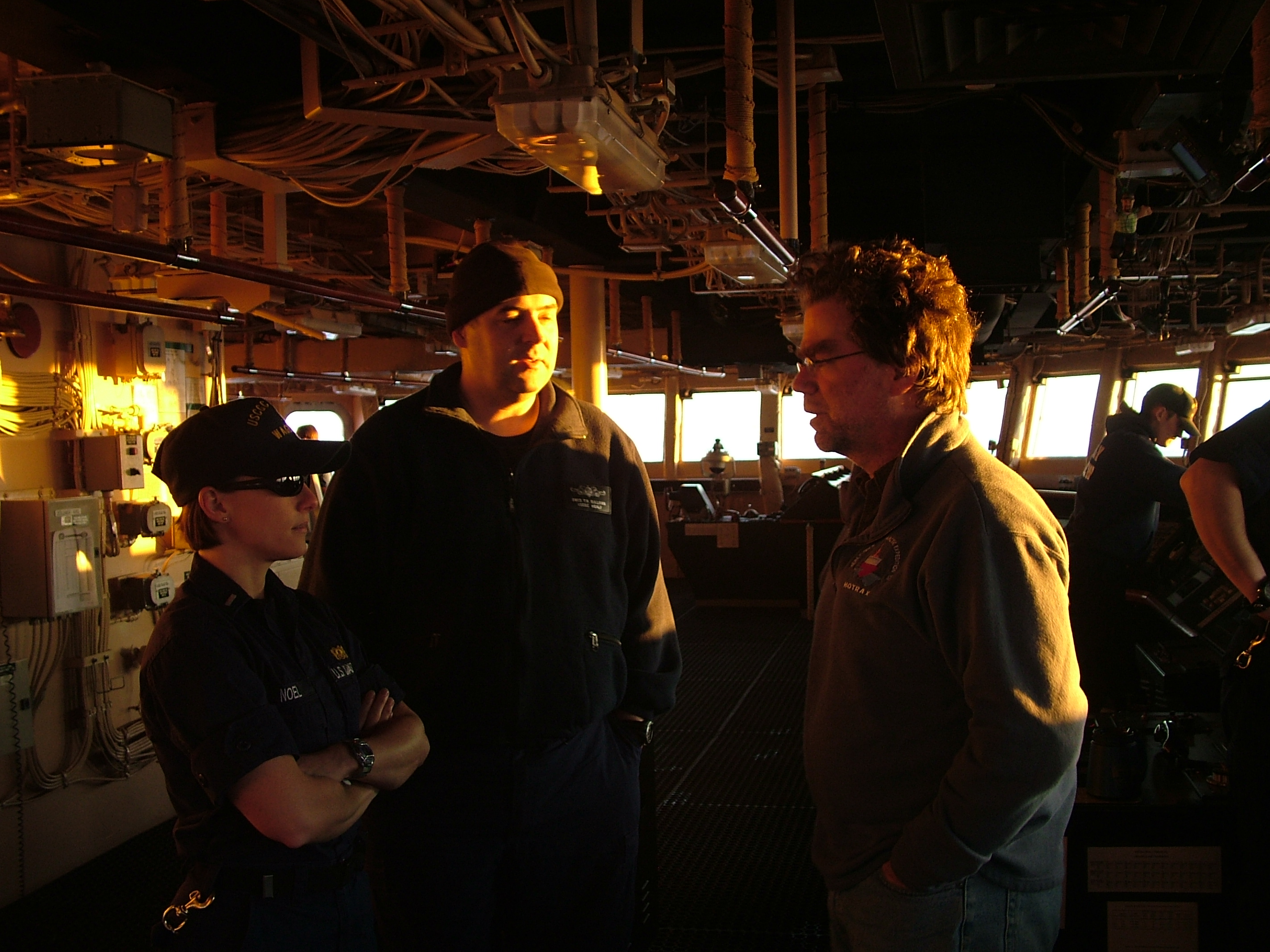 Some of the crew and research team of the USCGC Healy on the bridge.
