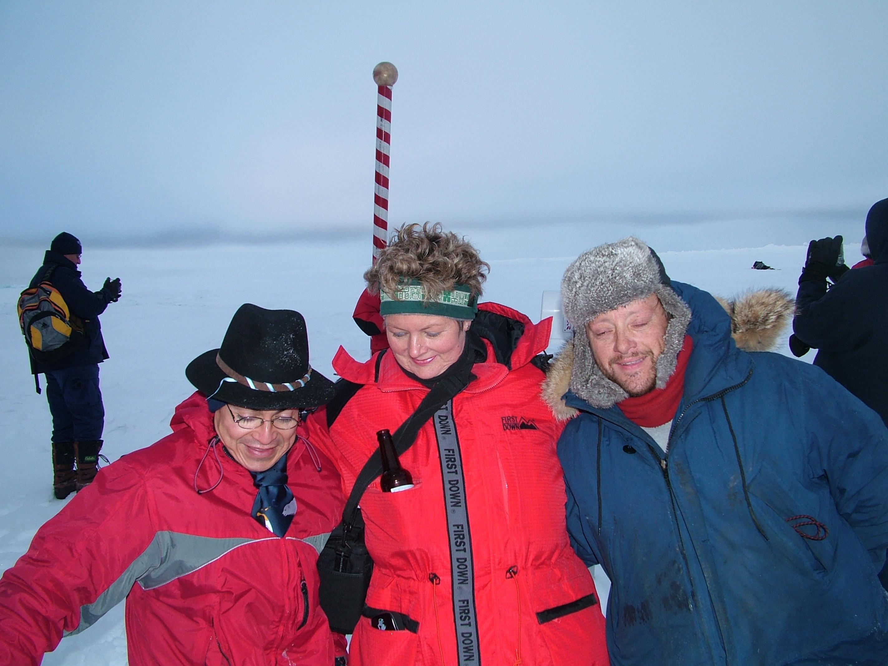 The crew of the USCGC Healy enjoy an ice liberty at the North Pole.