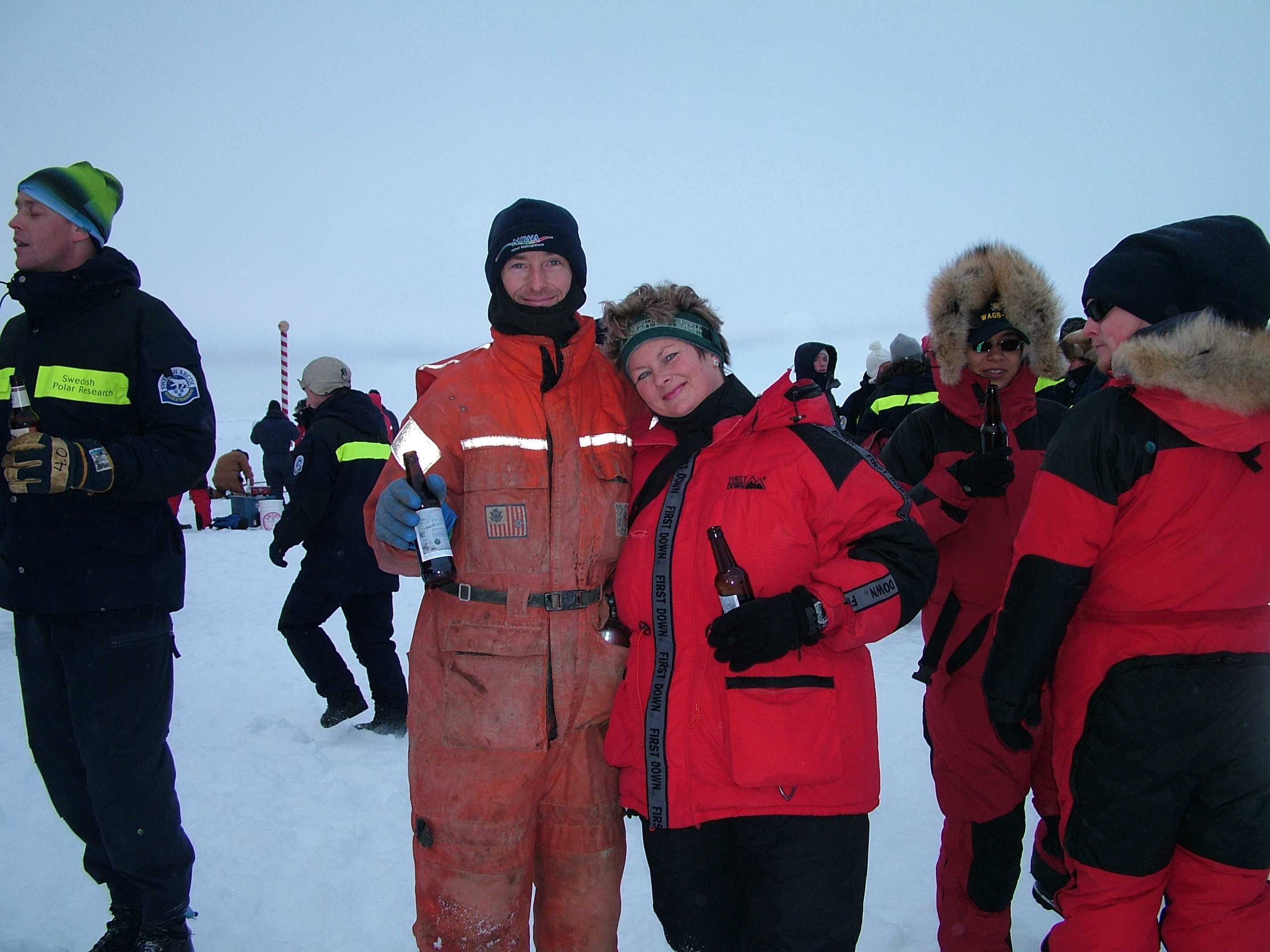 The crew of the USCGC Healy enjoy an ice liberty at the North Pole.
