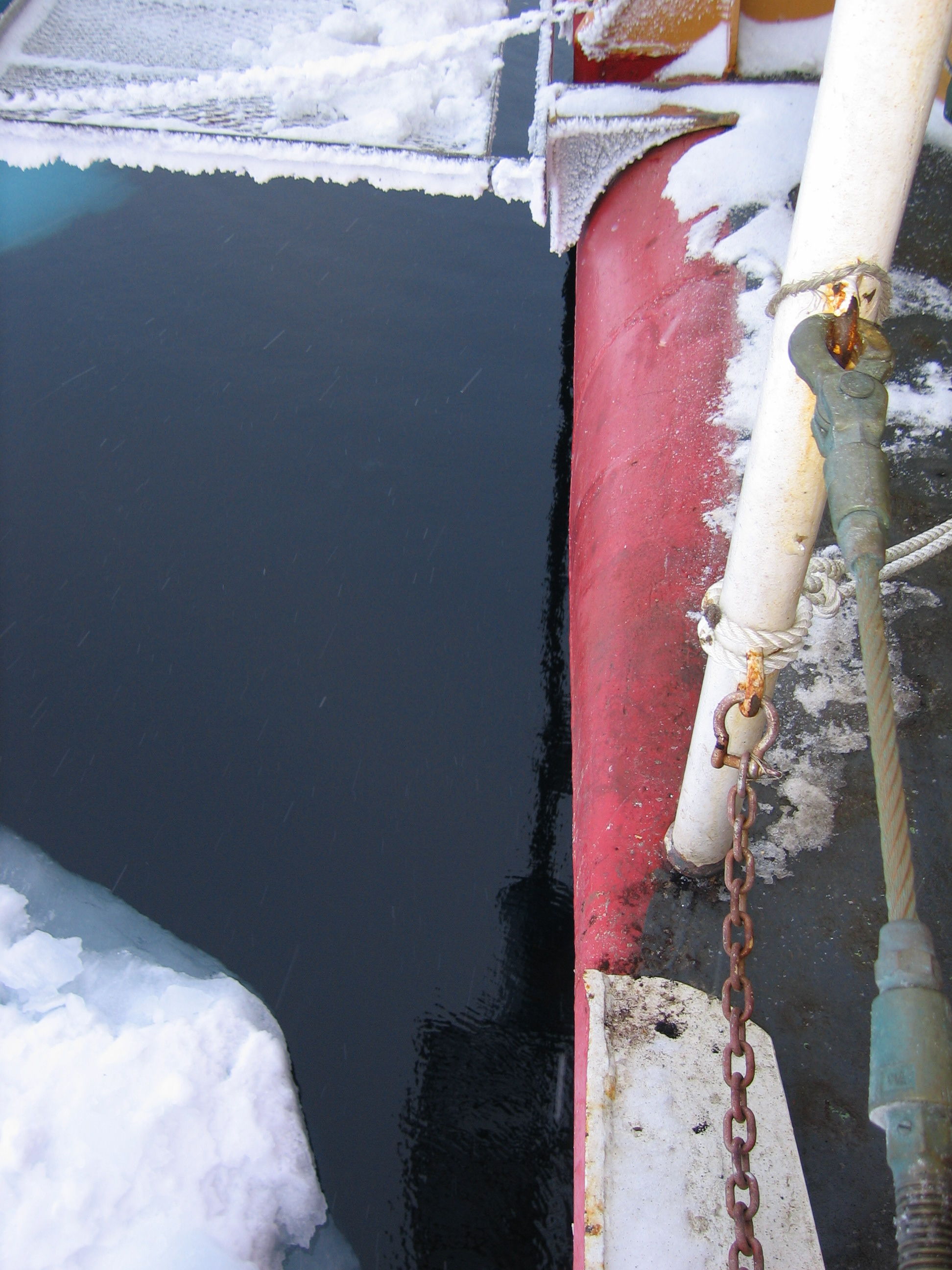 A view over the side of the USCGC Healy as a sea floor core is taken with the Jumbo Piston Core (JPC).