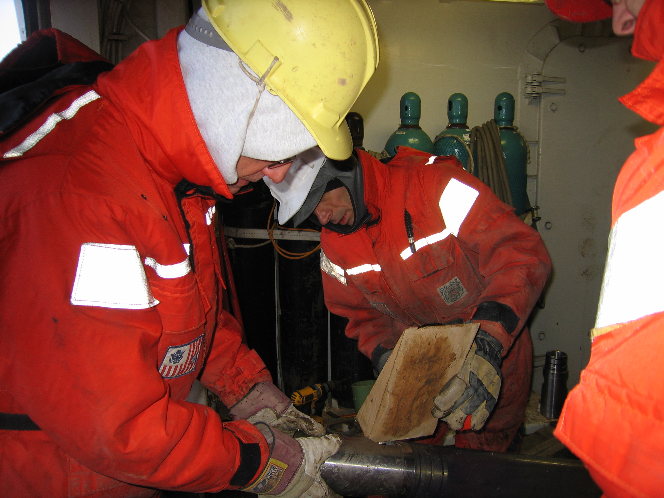 A view of a sea floor core taken with the Jumbo Piston Core (JPC) on board the USCGC Healy.