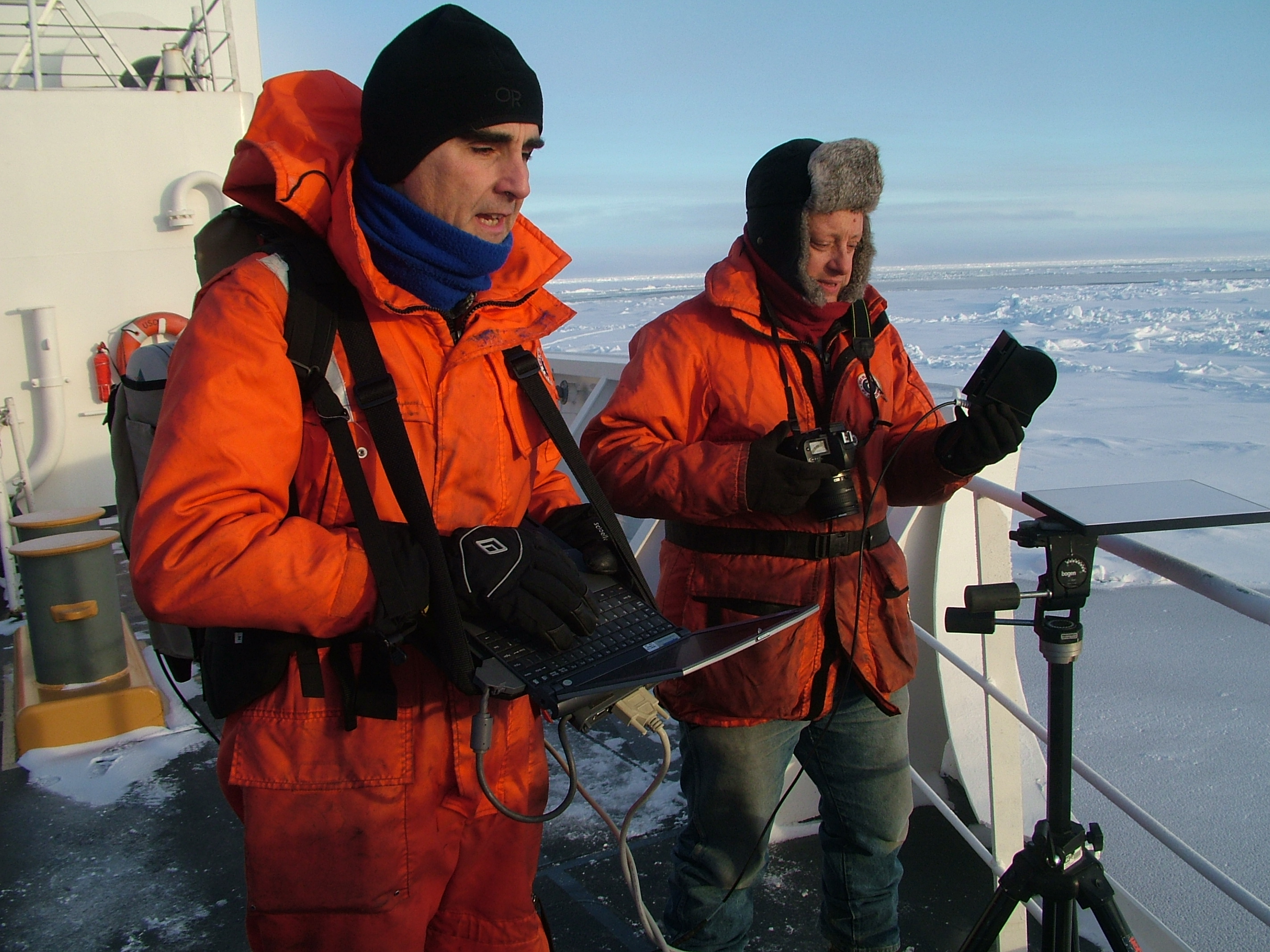 Researcher Don Perovich takes a reading from on board the USCGC Healy