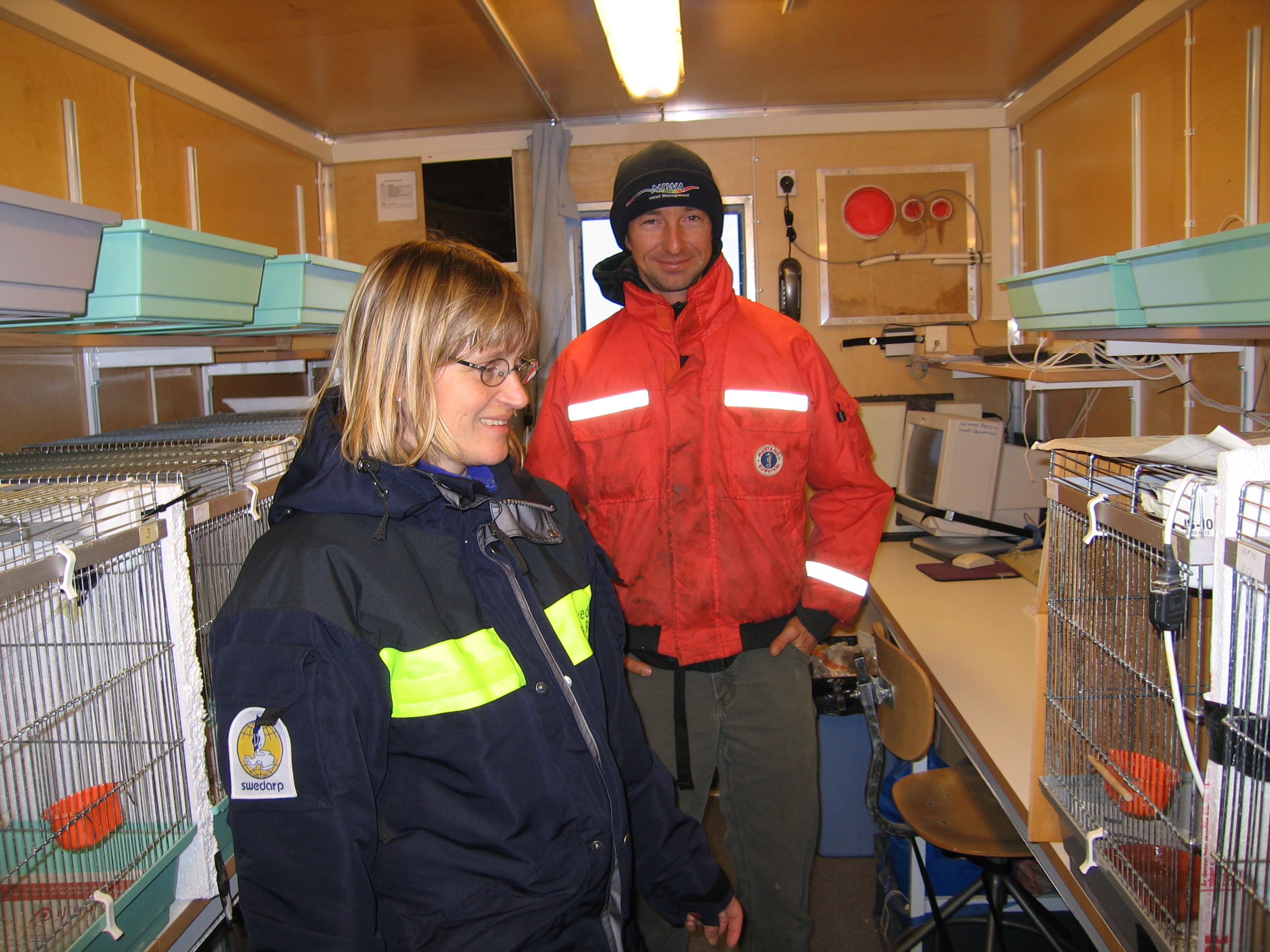 Researcher Susanne Akesson explains her magnetic navigation project using Northern Wheatear birds on board the Swedish icebreaker Oden.