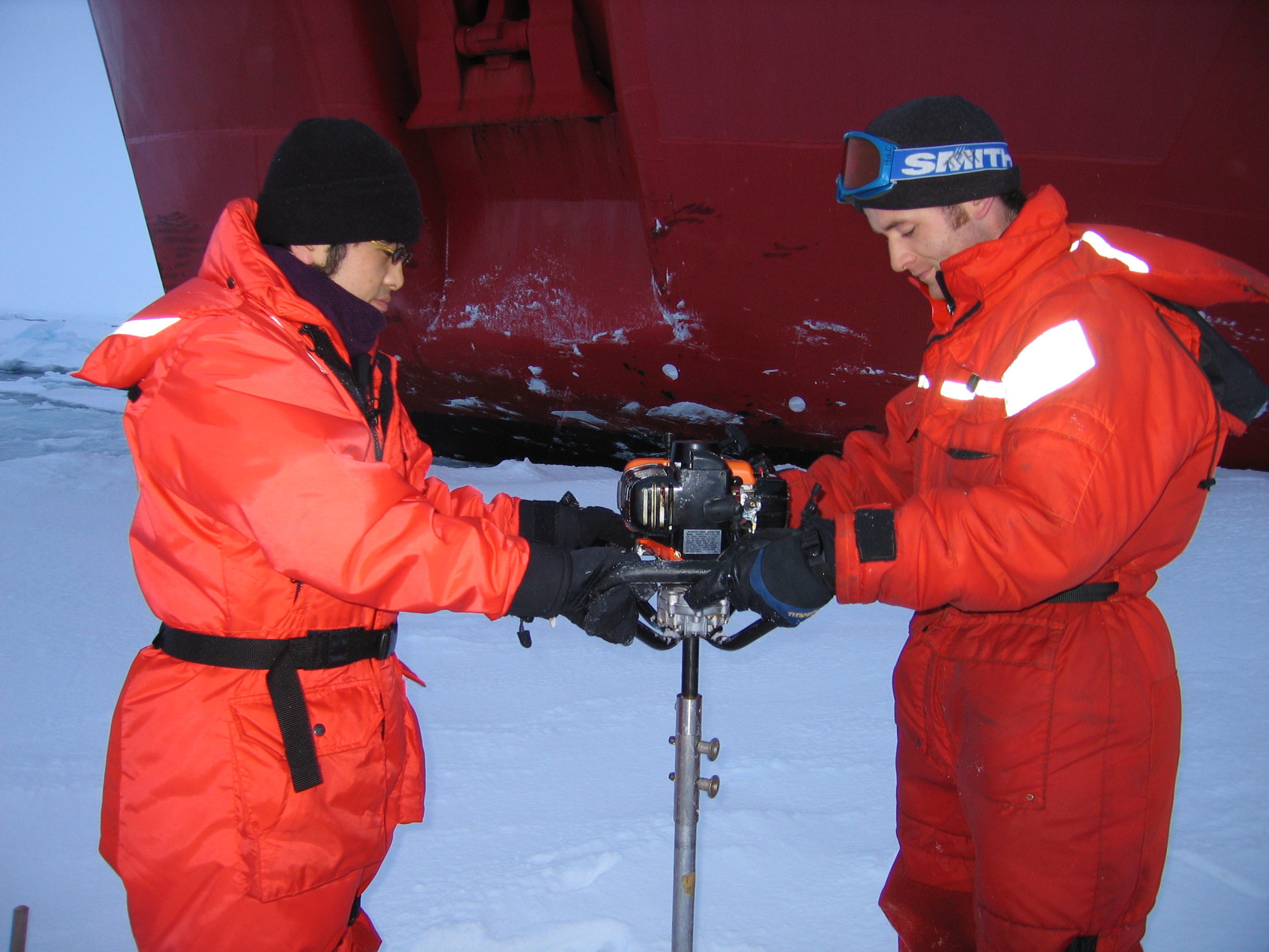 Drilling an ice core in the sea ice of the Arctic Ocean.