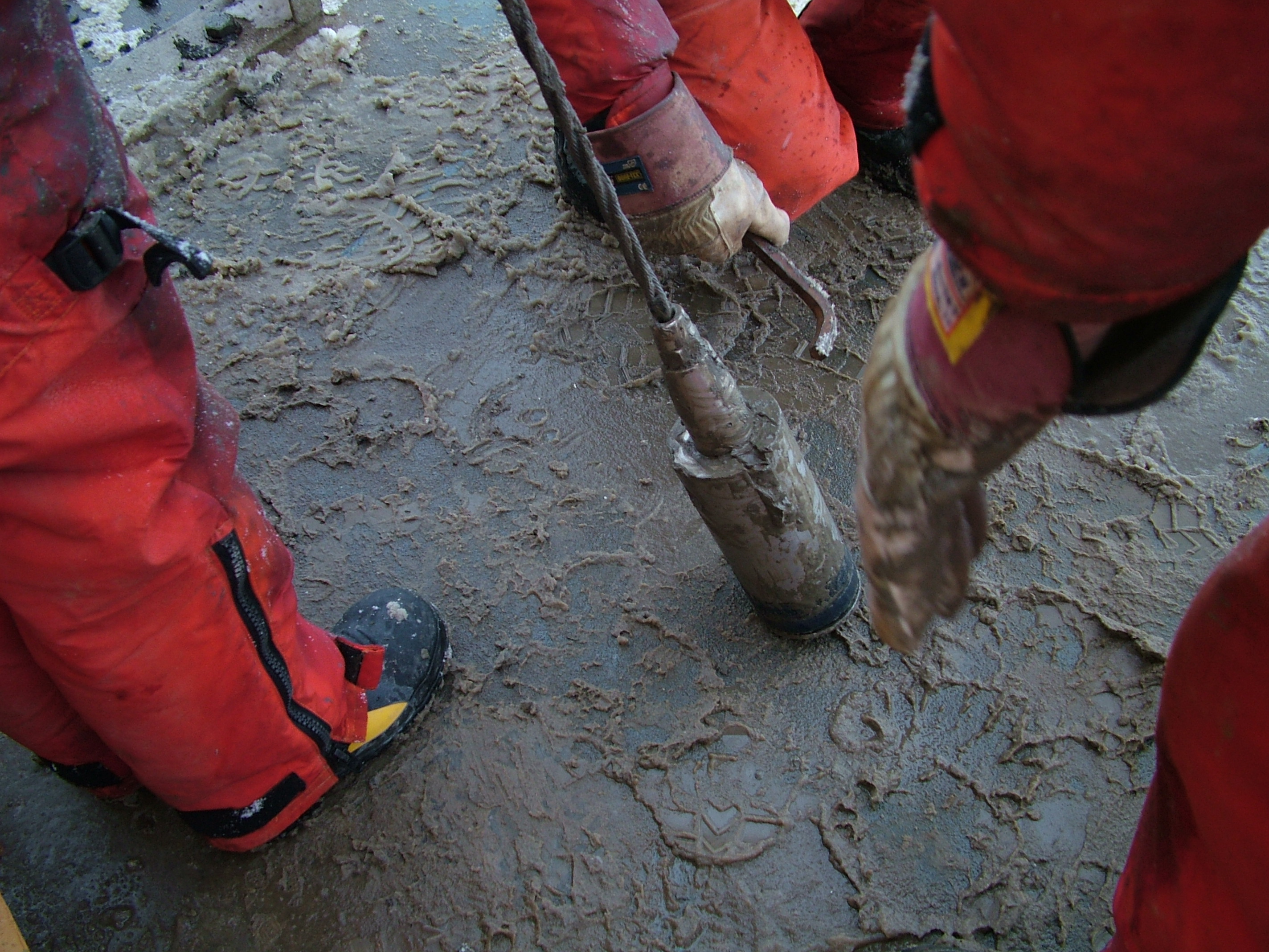 Taking a sea floor core with the Jumbo Piston Core (JPC) on board the USCGC Healy.