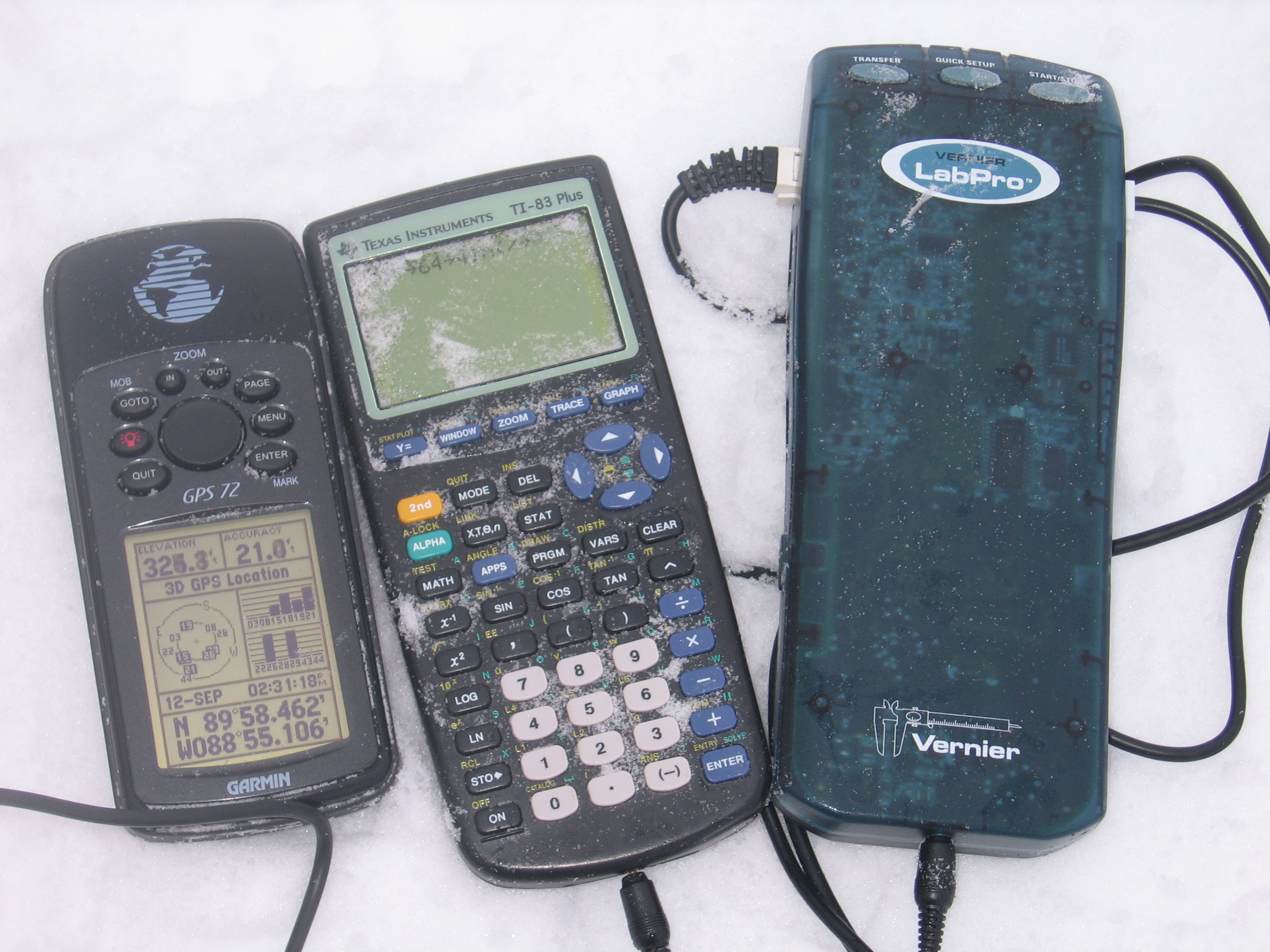 A Vernier Lab Pro and a photo gate that TREC teacher Ute Kaden used to measure acceleration due to gravity at the North Pole during the USCGC Healy's ice liberty.