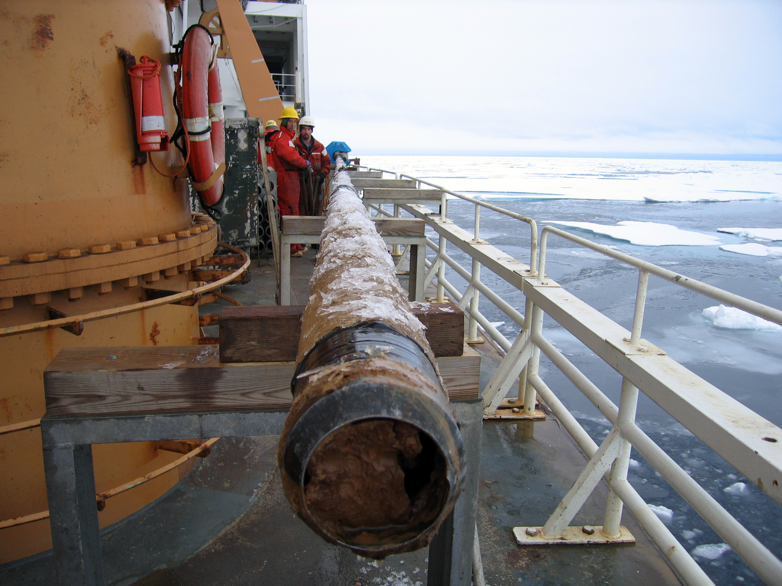 A Jumbo Pison Core (JPC) of the sediment of the Arctic Ocean floor.