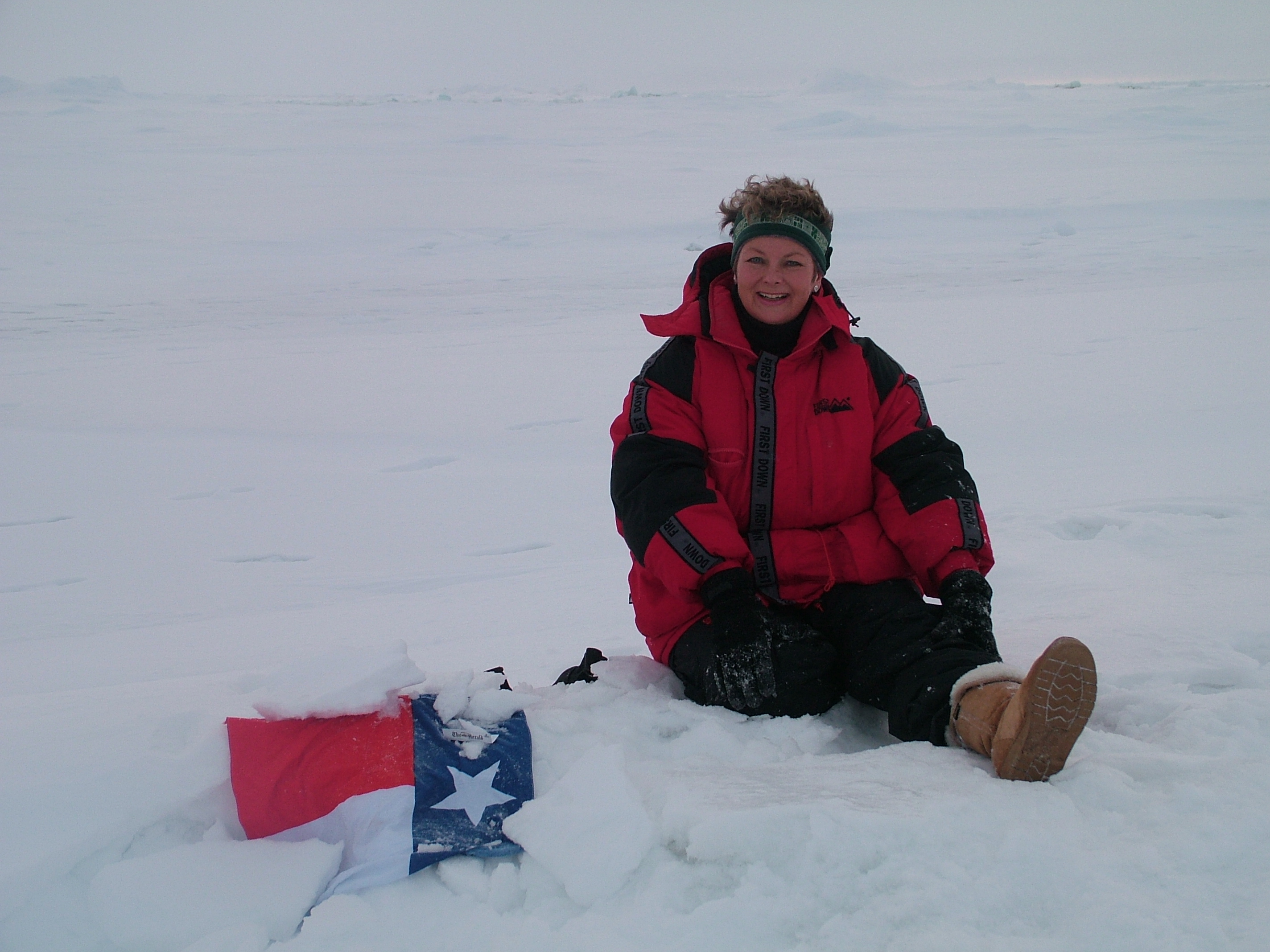 The Texas state flag rests on the ice of the Arctic Ocean, put there by TREC teacher Ute Kaden.