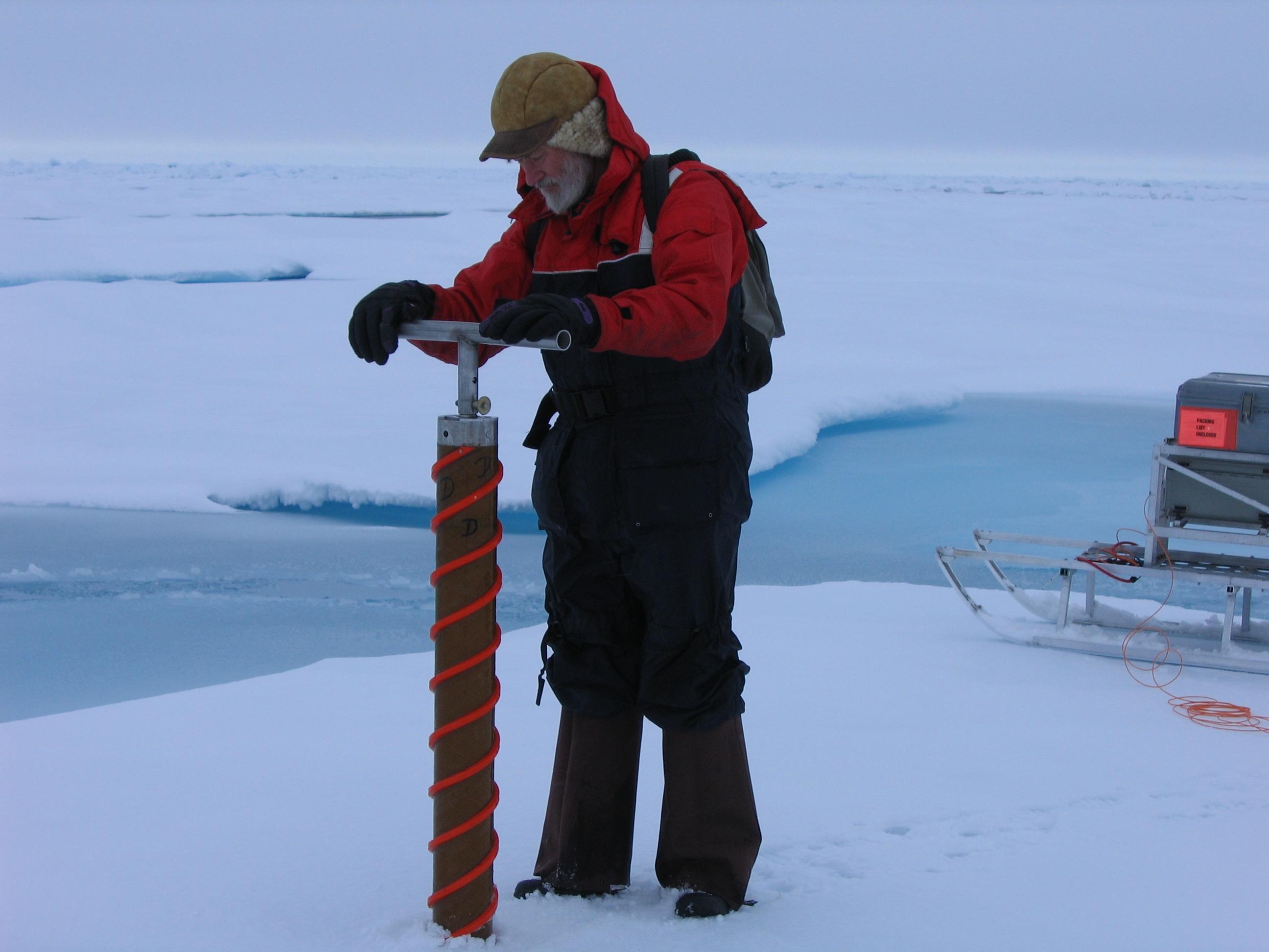 Dr. Thomas Grenfell of the Unversity of Washington drilling an ice core.