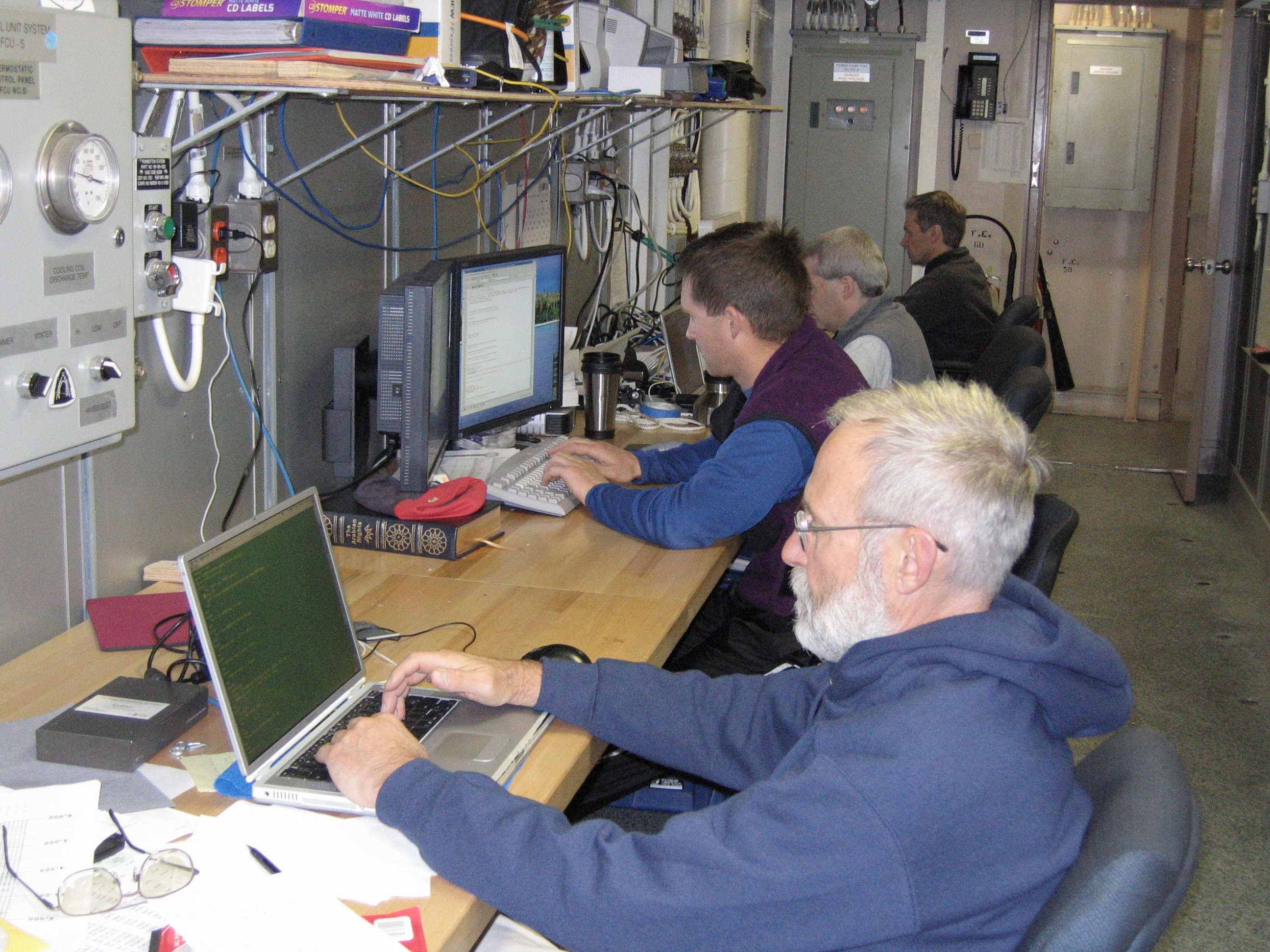 Several researchers utilize the computers on board the USCGC Healy.