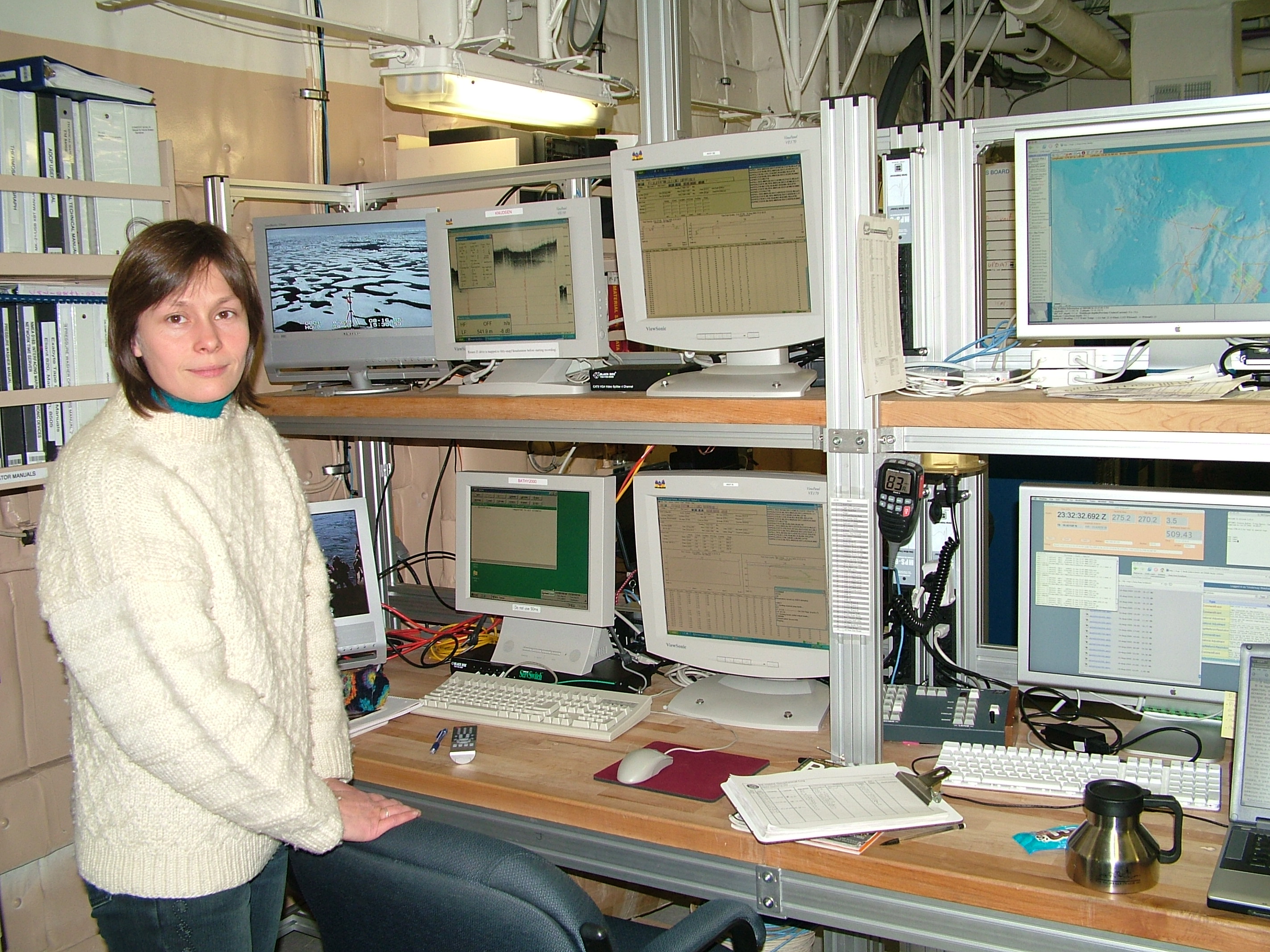 Monitors displaying some of the data collected on board the USCGC Healy.