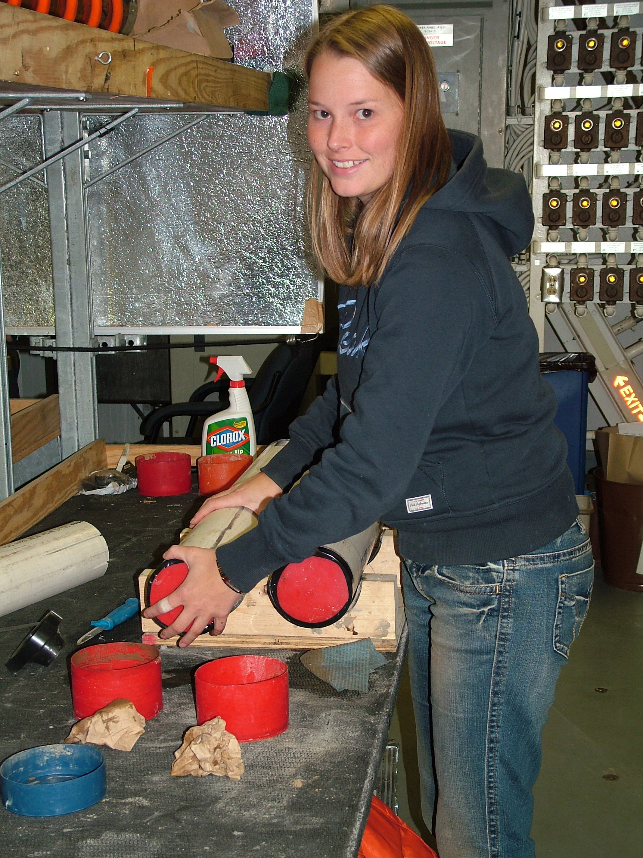 Emma Sellen caps some sediment cores on board the USCGC Healy.