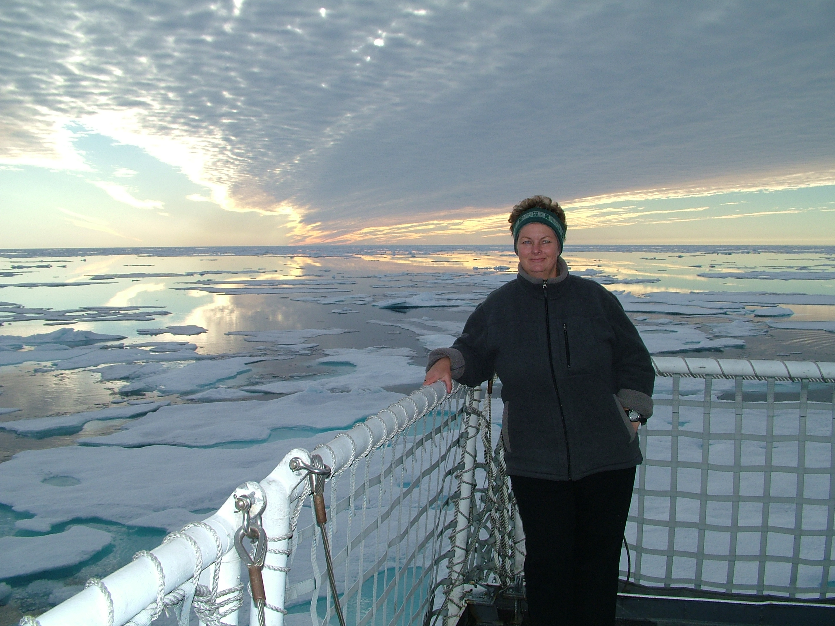 TREC teacher Ute Kaden on the deck of the USCGC Healy in the Arctic Ocean.