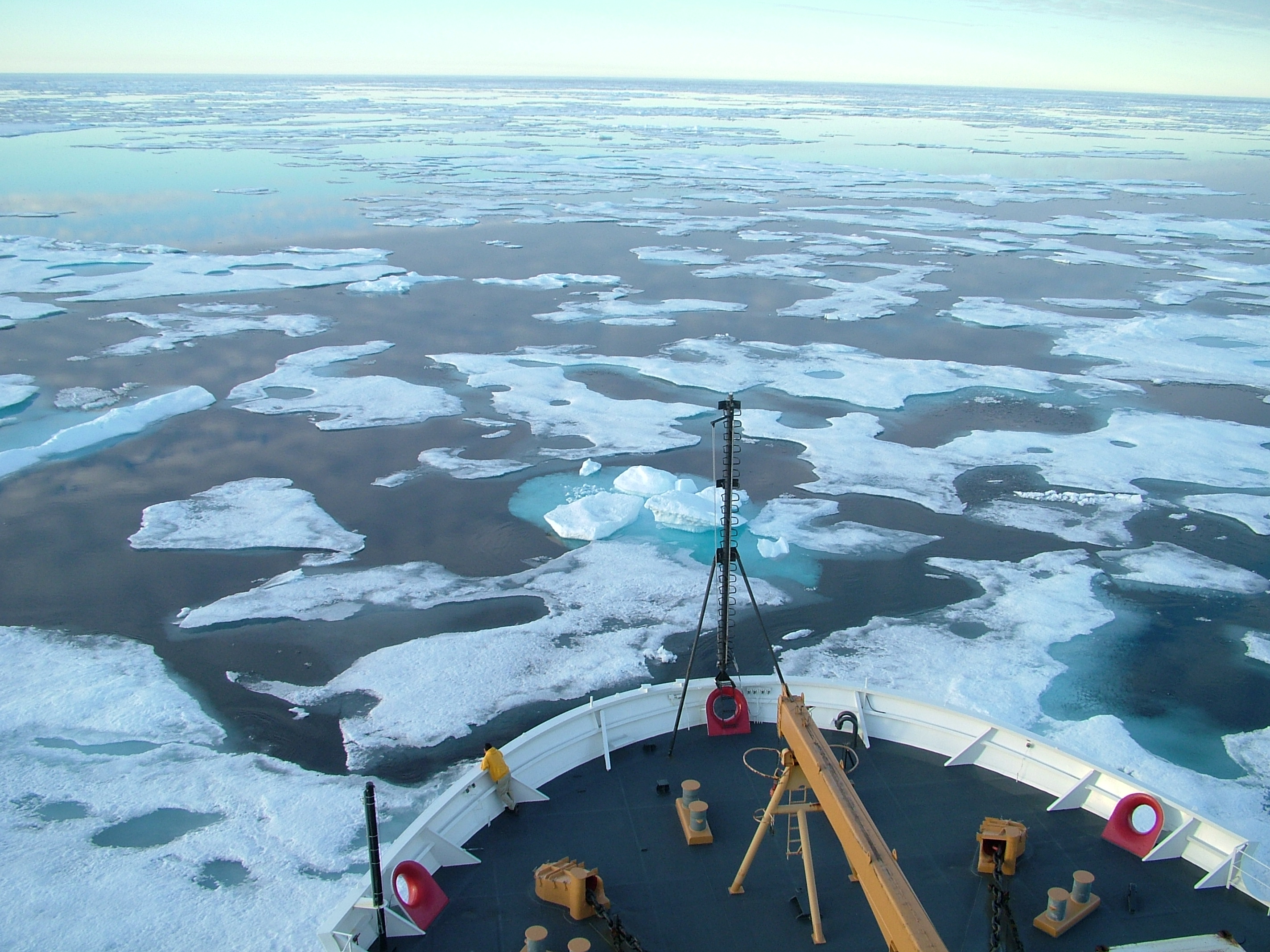 A view of the sea ice of the Arctic Ocean as seen from the deck of the USCGC Healy.