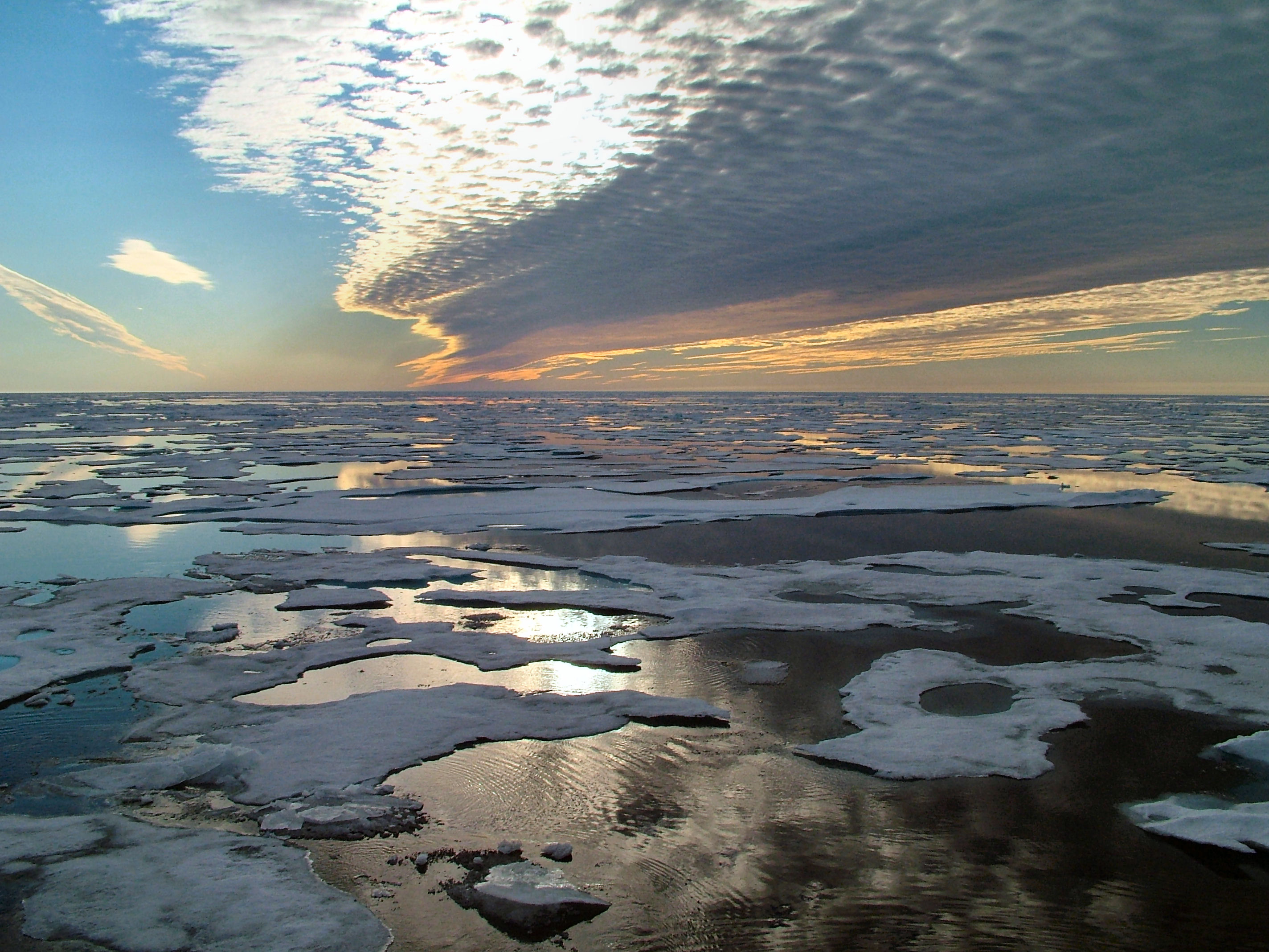 A view of the sea ice of the Arctic Ocean as seen from the deck of the USCGC Healy.