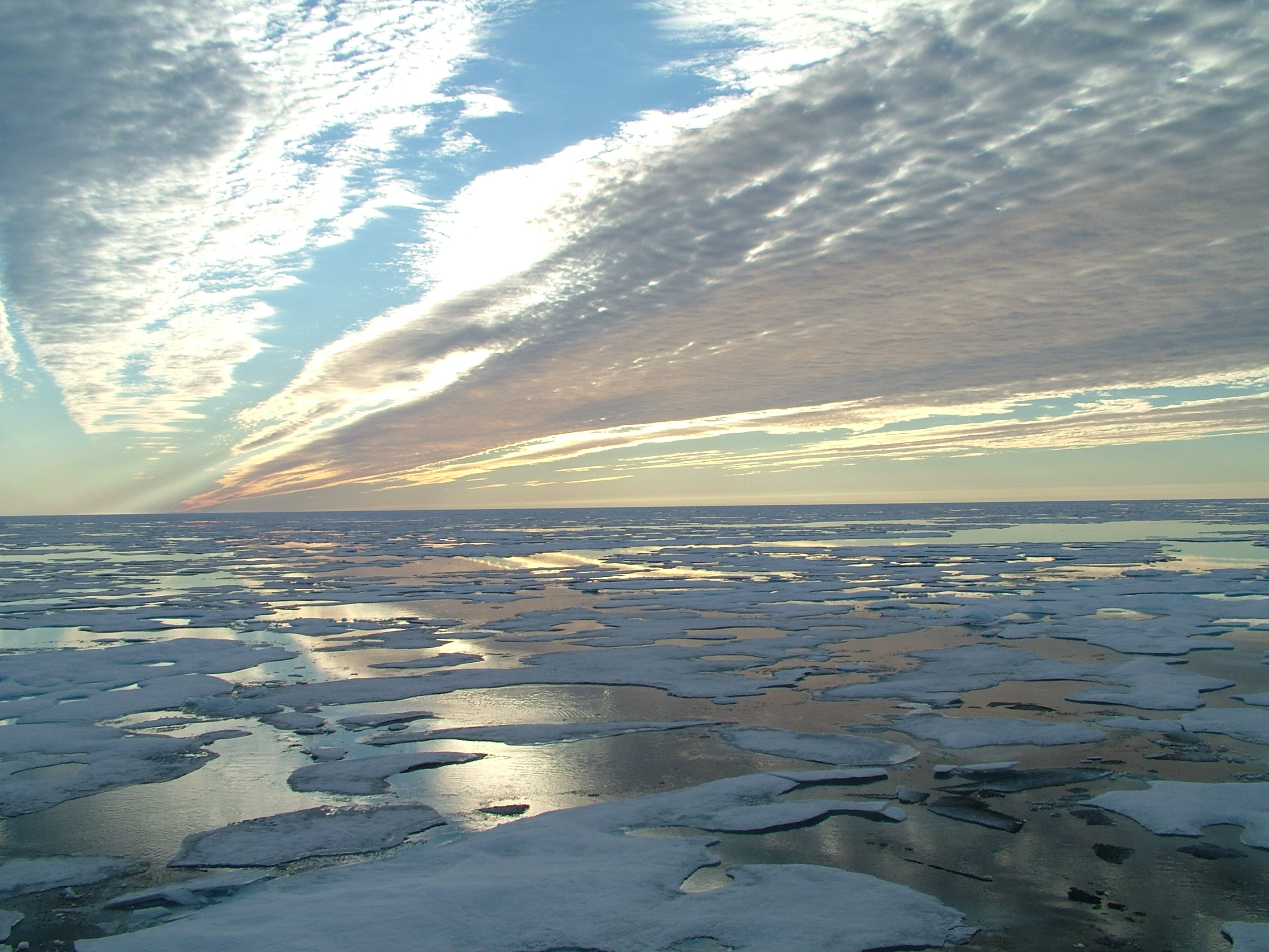 A view of the sea ice of the Arctic Ocean as seen from the deck of the USCGC Healy.