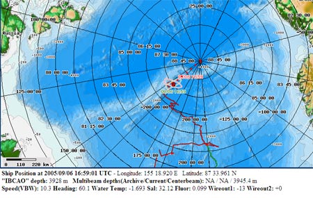 A map of the USCGC Healy's course as of September 06, 2005.