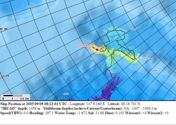 A map of the USCGC Healy's position and course from September 9, 2005.