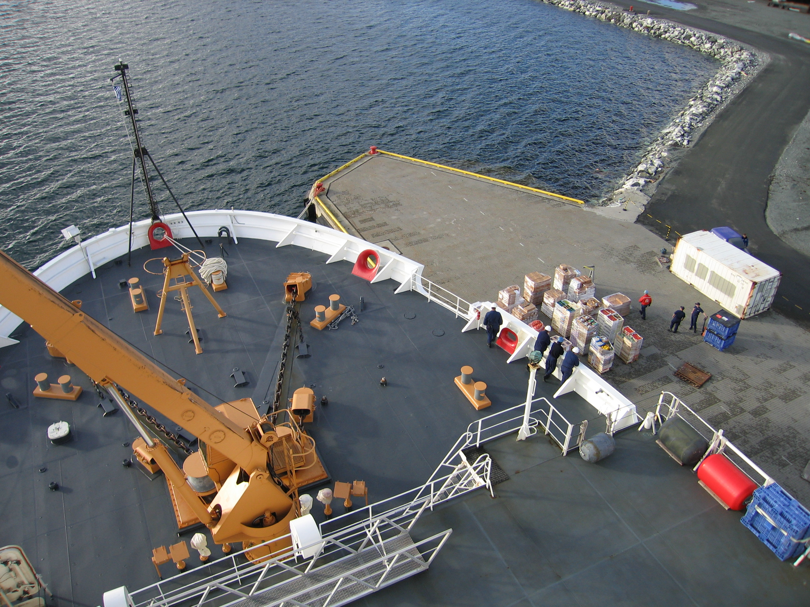 The deck of the US Coast Guard icebreaker Healy docked in Tromso, Norway