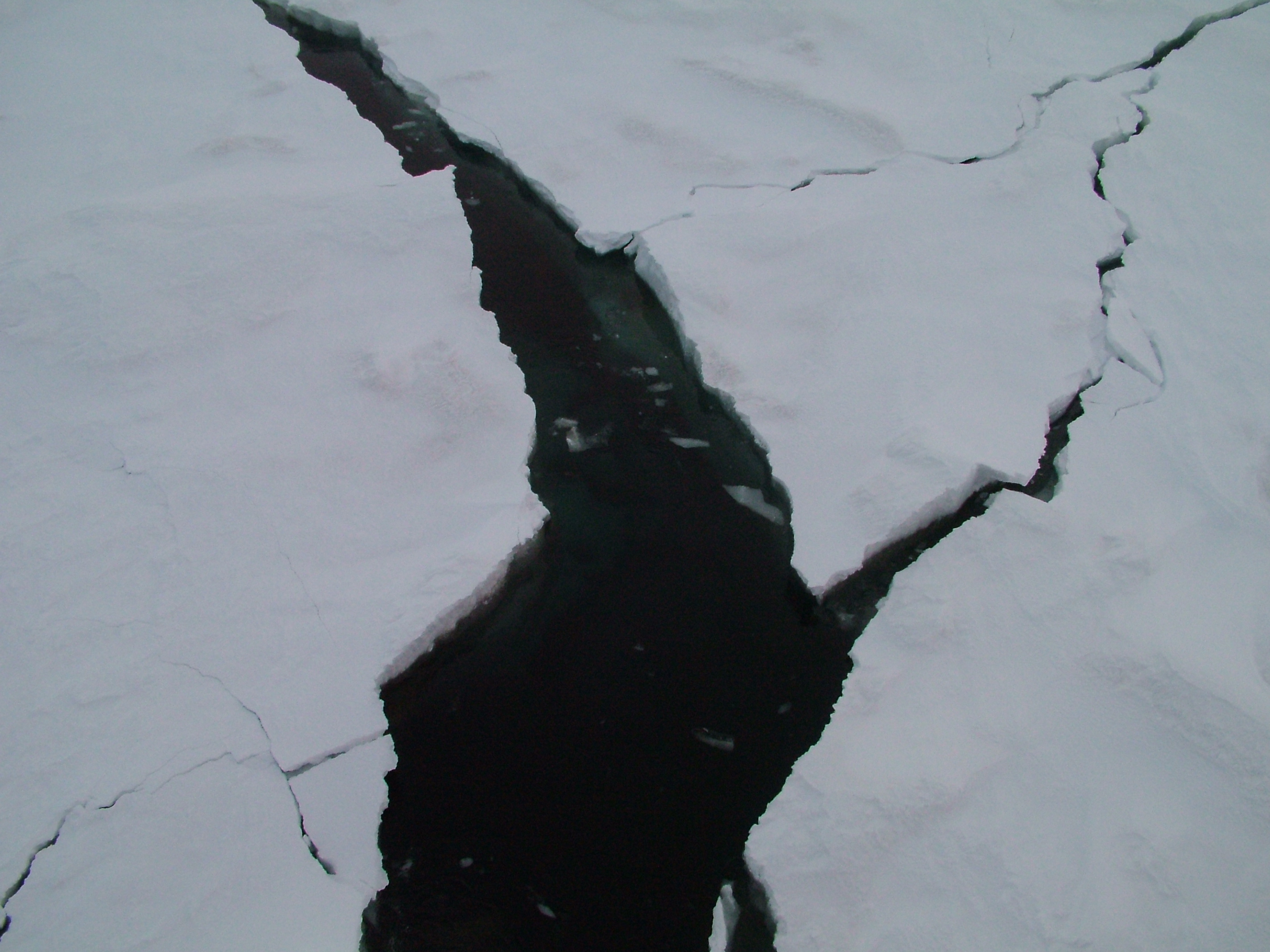 A view of a open water seen through a crack in the sea ice.