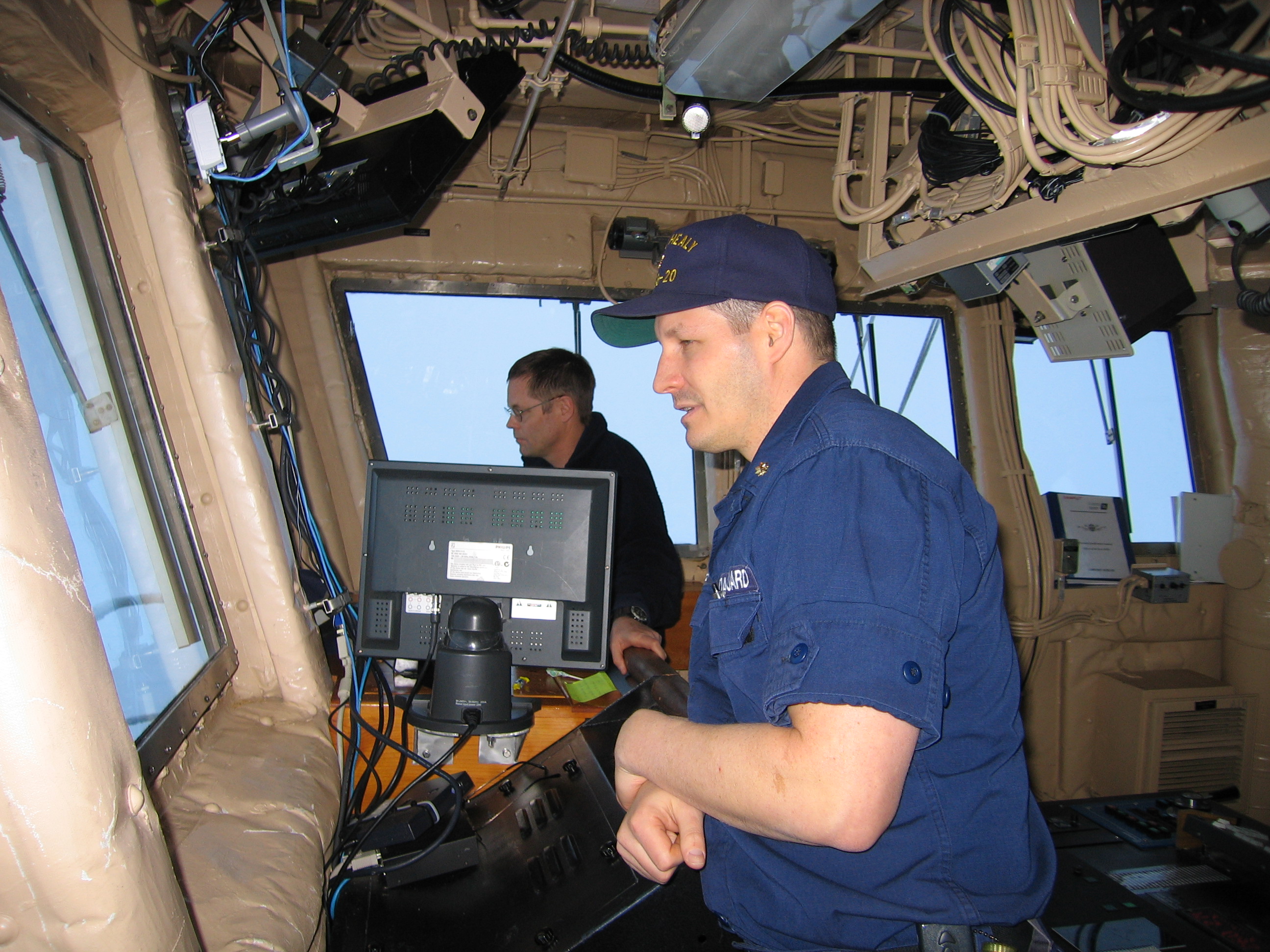 LCDR John Reeves and Captain Dan Oliver at the controls of the USCGC Healy.