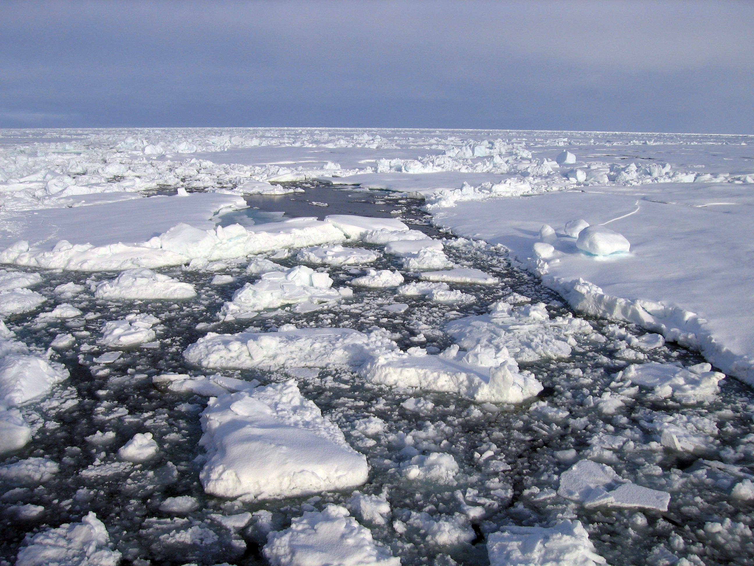 A view of the trail of broken sea ice behind the USCG icebreaker Healy.