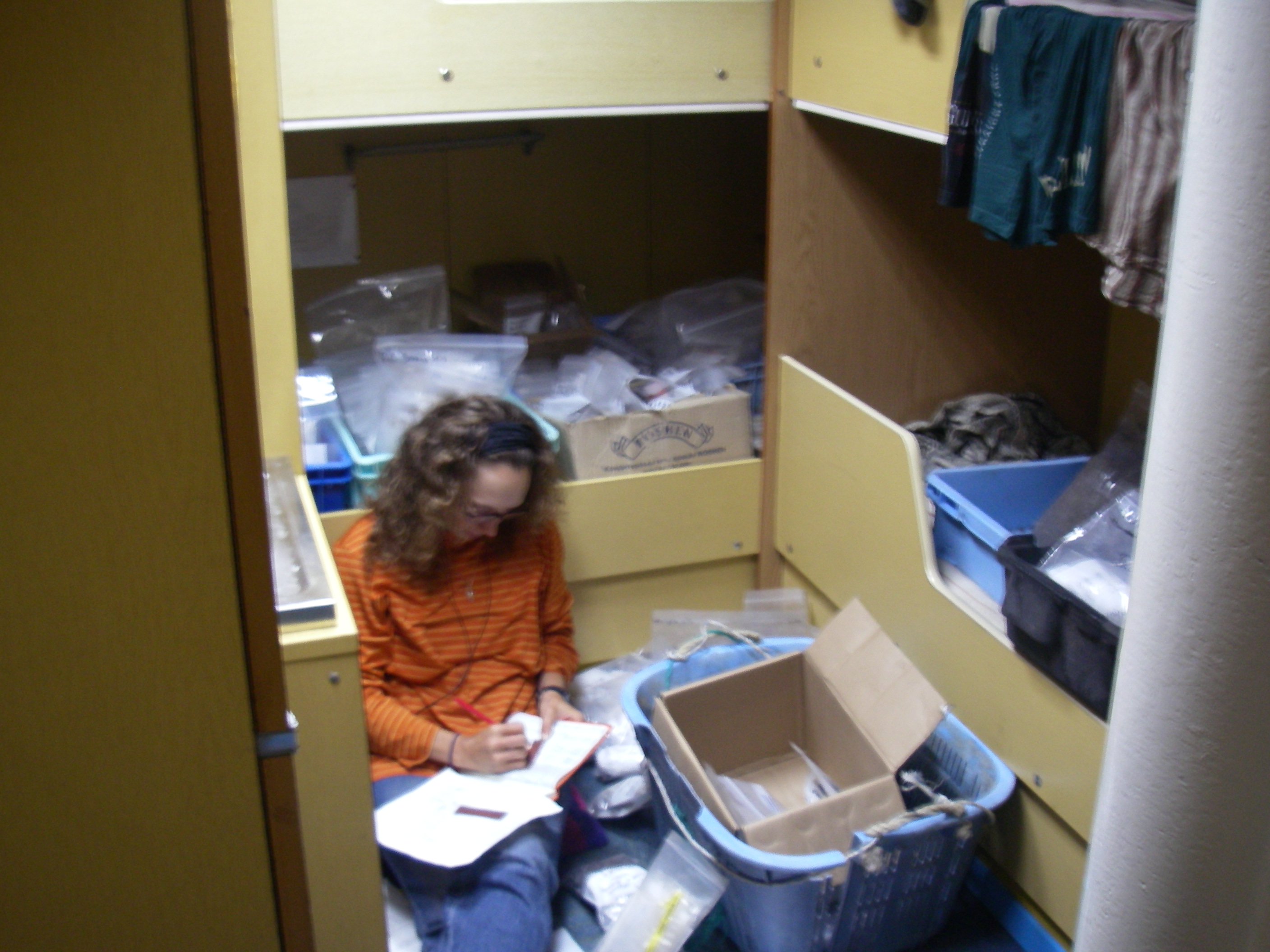 TREC teacher Misty Nikula working on cataloging and labeling samples from the test pit at Vodopadnaya, Russia.