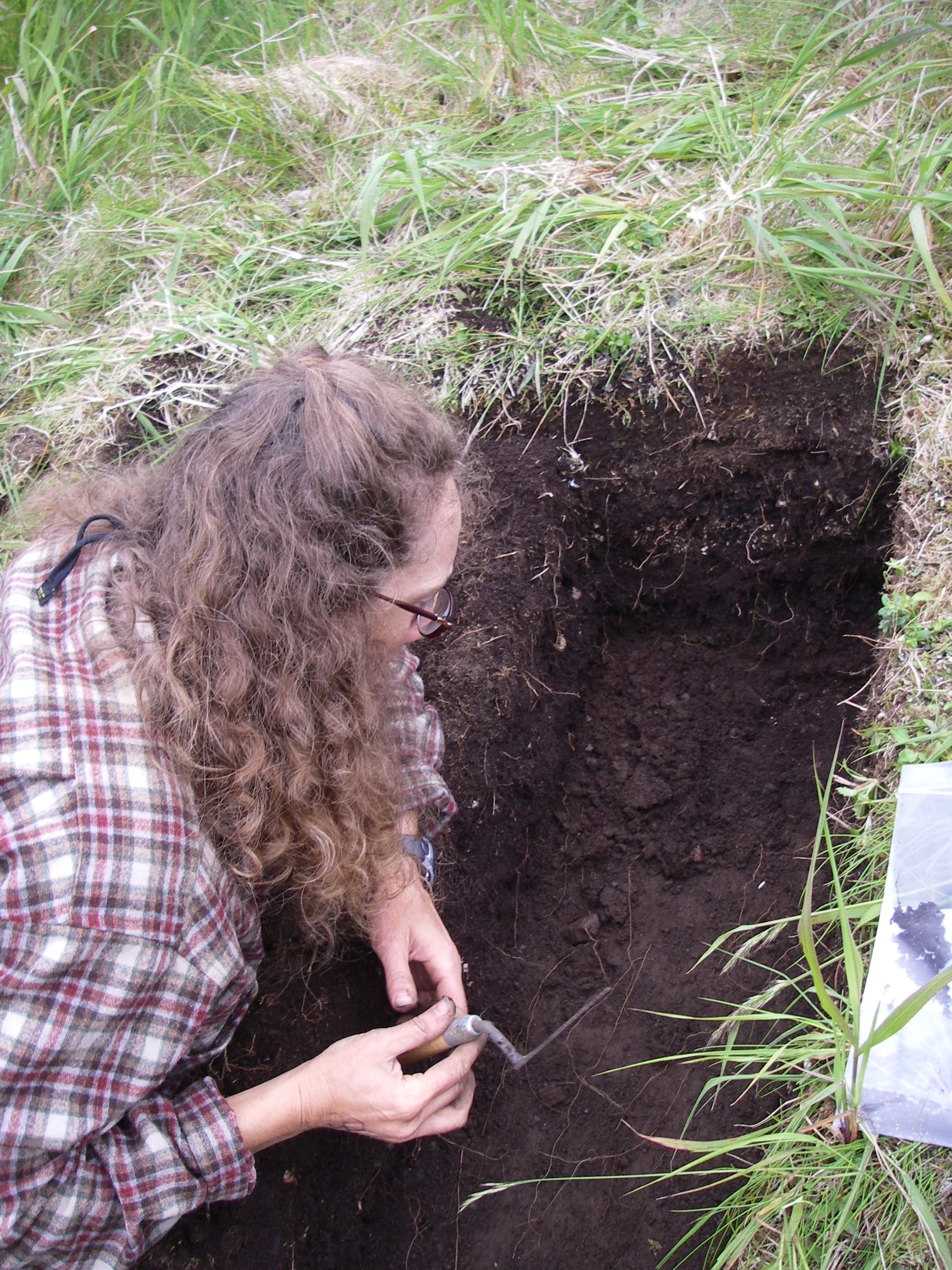 TREC teacher Misty Nikula working at a midden site at Ainu Bay on Matua Island, Russia.