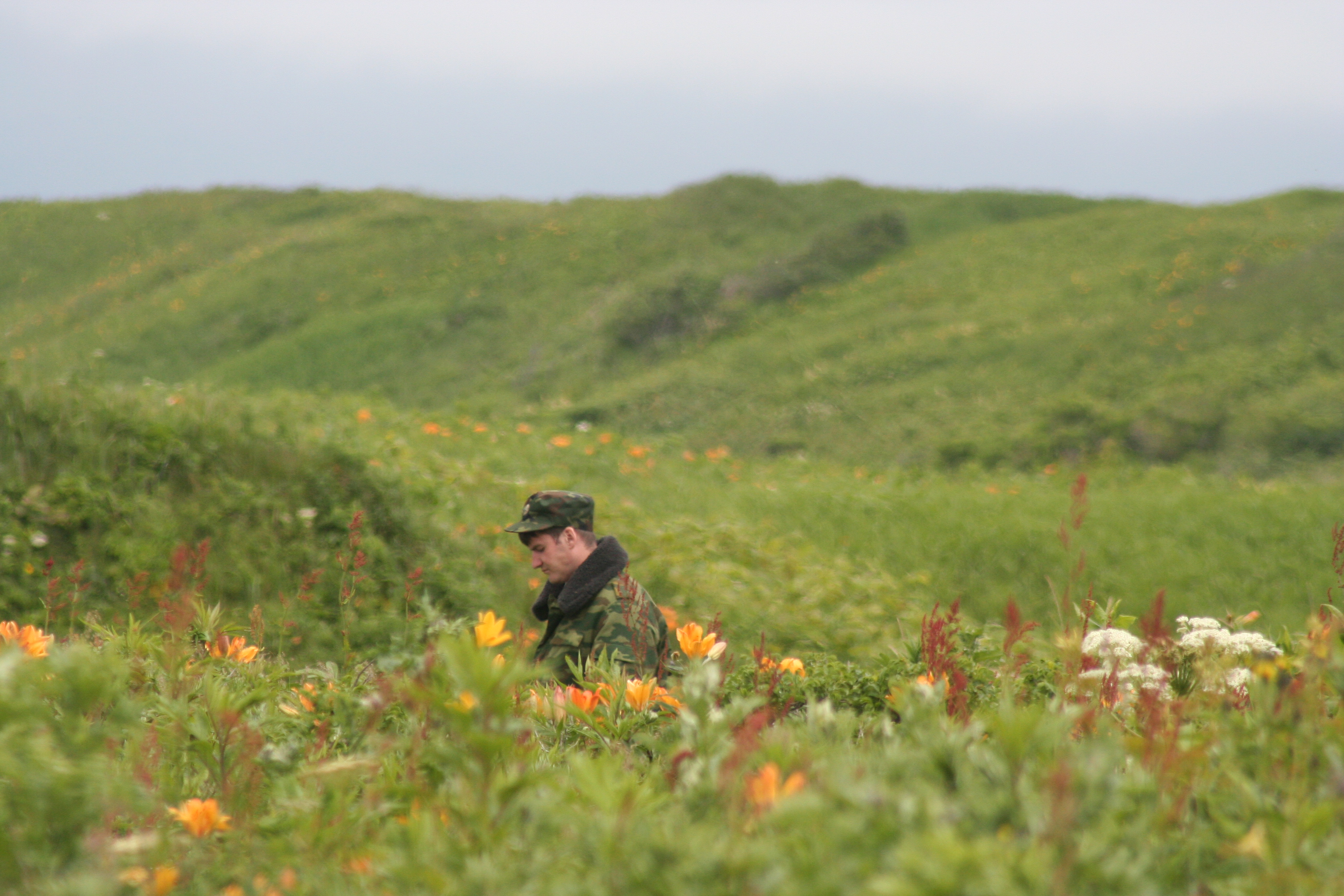 A Russian Coast Guard soldier who watched the work at Berezovka, Russia.