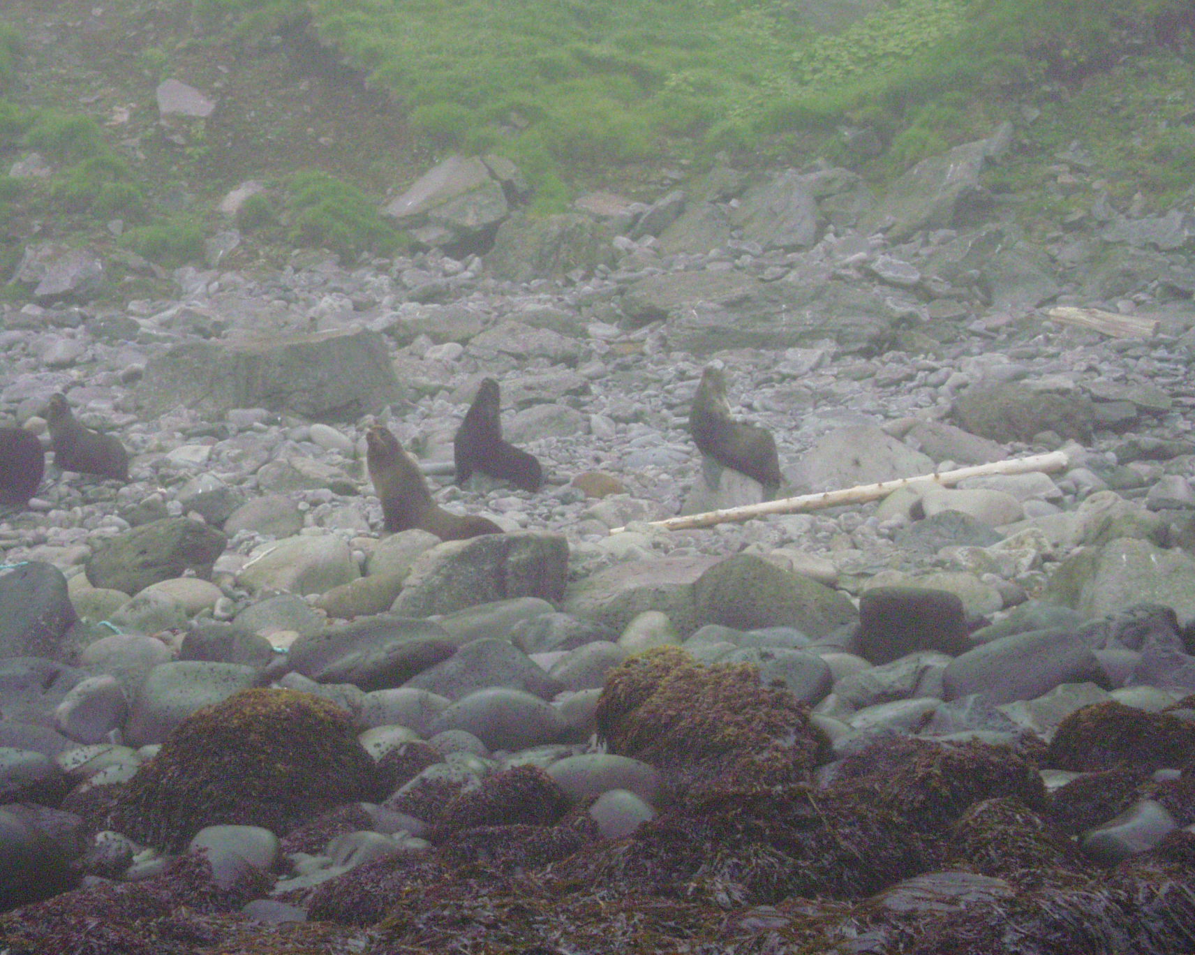 Fur seals along the beach at Ryponkicha, Russia.