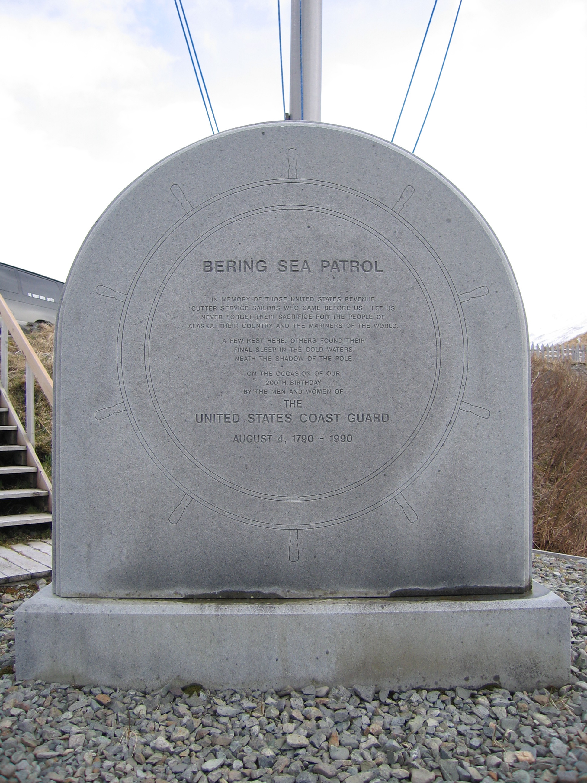 WWII sign at Veterans' memorial near Dutch Harbor, AK.
